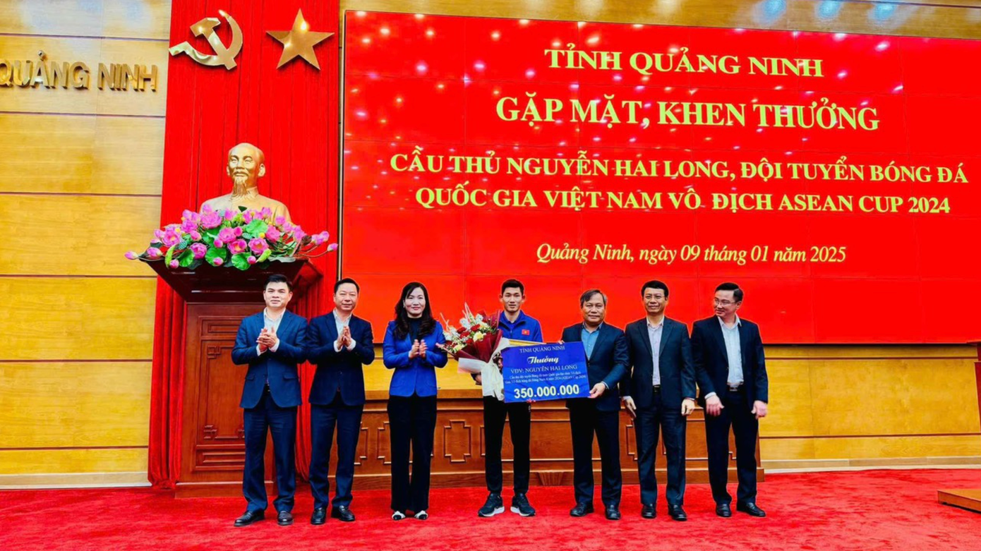 Sáng 9/1, tỉnh Quảng Ninh đã tổ chức buổi gặp mặt, khen thưởng Nguyễn Hai Long. Tiền vệ CLB Hà Nội từng là nhân tố quan trọng trong màu áo đội bóng quê hương Quảng Ninh ở V-League.