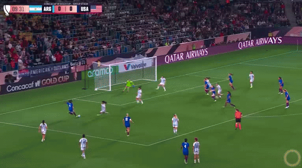 Argentina, với tư cách khách mời, đã hứng chịu "cơn thịnh nộ" của đội bóng mạnh nhất châu lục. Chỉ trong vòng 17 phút, họ đã nhận liền 2 bàn thua và tác giả đều là Jaedyn Shaw. Đầu tiên, tiền đạo 19 tuổi nhận bóng bên cánh trái, cô tận dụng việc thủ môn Argentina không chặn góc gần để tung cú đá chìm và hiểm, mở tỷ số.