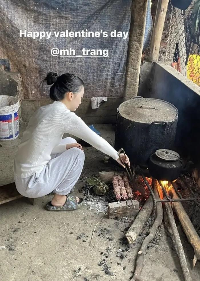 Không chỉ sở hữu vóc dáng chuẩn, gương mặt xinh xắn, Mai Hà Trang còn ghi điểm với những hình ảnh giản dị khi đến nhà Đức Chinh. Còn nhớ dịp Tết năm 2021, Mai Hà Trang đã đến nhà bạn trai để cùng nấu ăn và gặp mặt gia đình người yêu. Hình ảnh cô nàng nấu ăn bằng bếp củi thành thạo khiến netizen ấn tượng. Mẻ thịt nướng mà Hà Trang chuẩn bị trông vô cùng ngon lành.