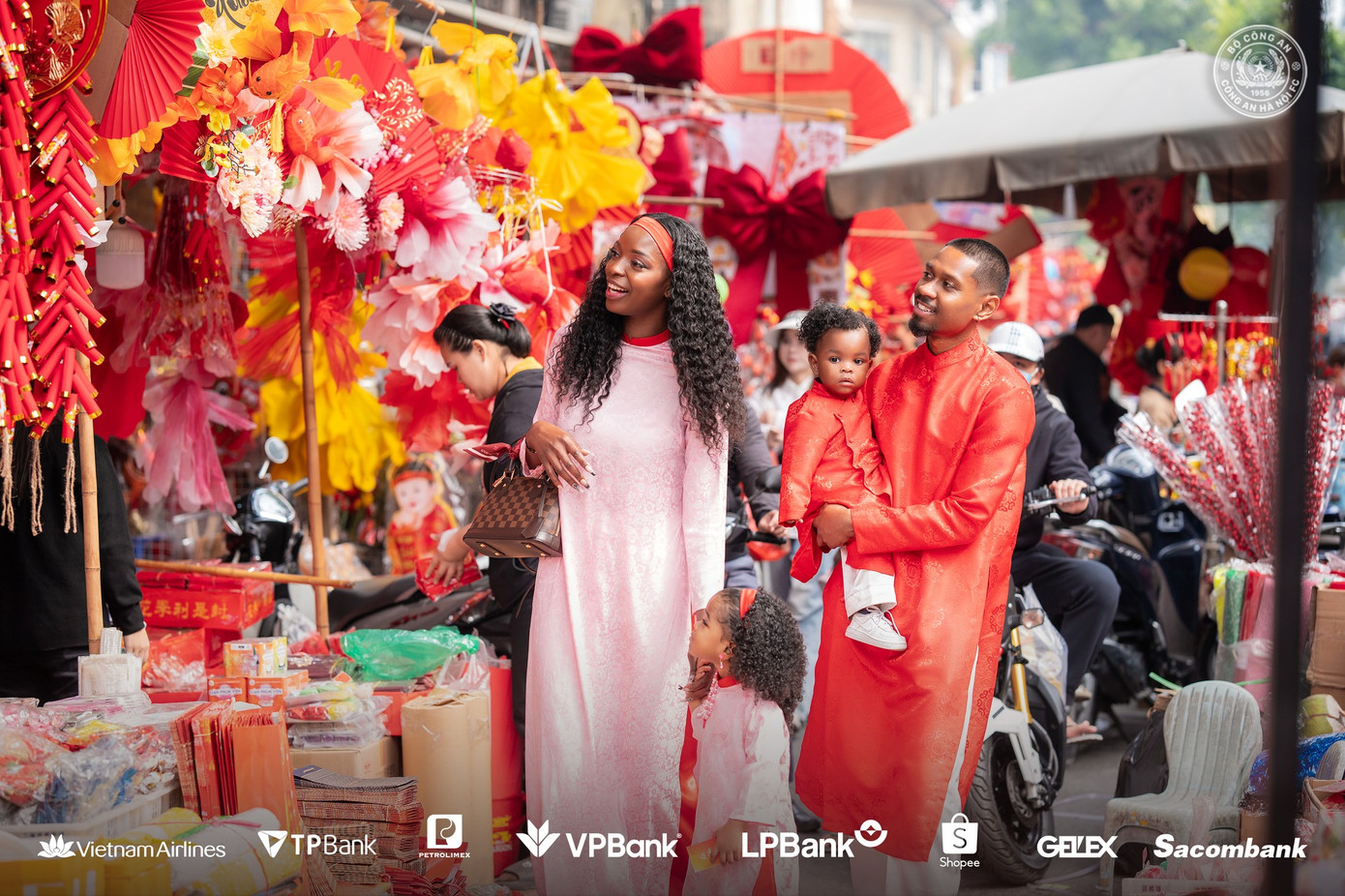 | Gia đình nhỏ của Jason Pendant Quang Vinh rực rỡ trong tà áo dài Việt Nam. |