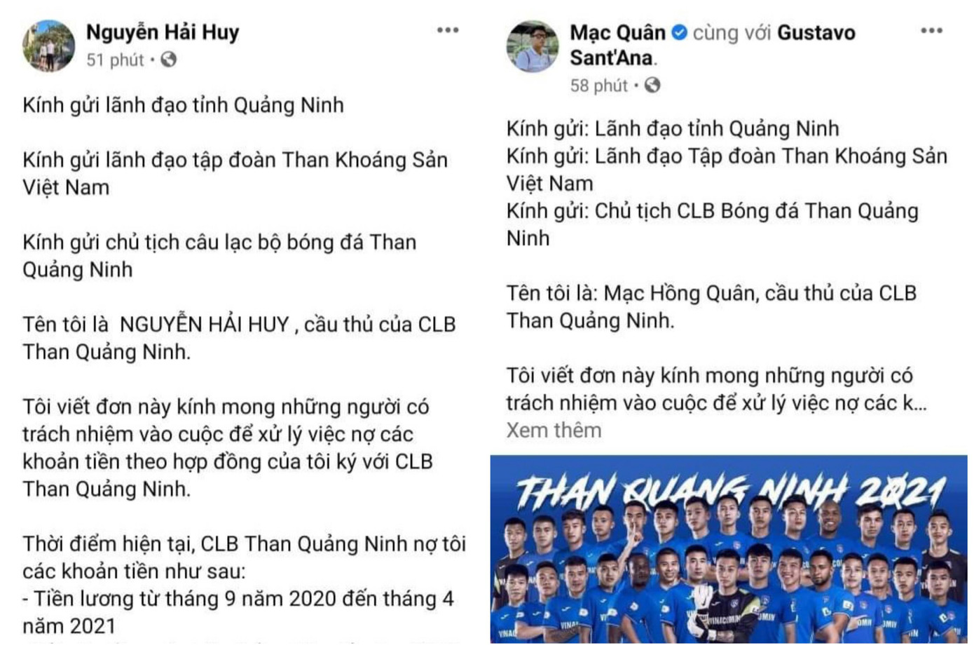 Trên các trang Facebook cá nhân, đồng loạt các cầu thủ của đội bóng Than Quảng Ninh đã đăng tải "tâm thư" đòi tiền lương, thưởng và các khoản tiền đáng được hưởng. Nội dung các bức "tâm thư" gần như giống nhau.
