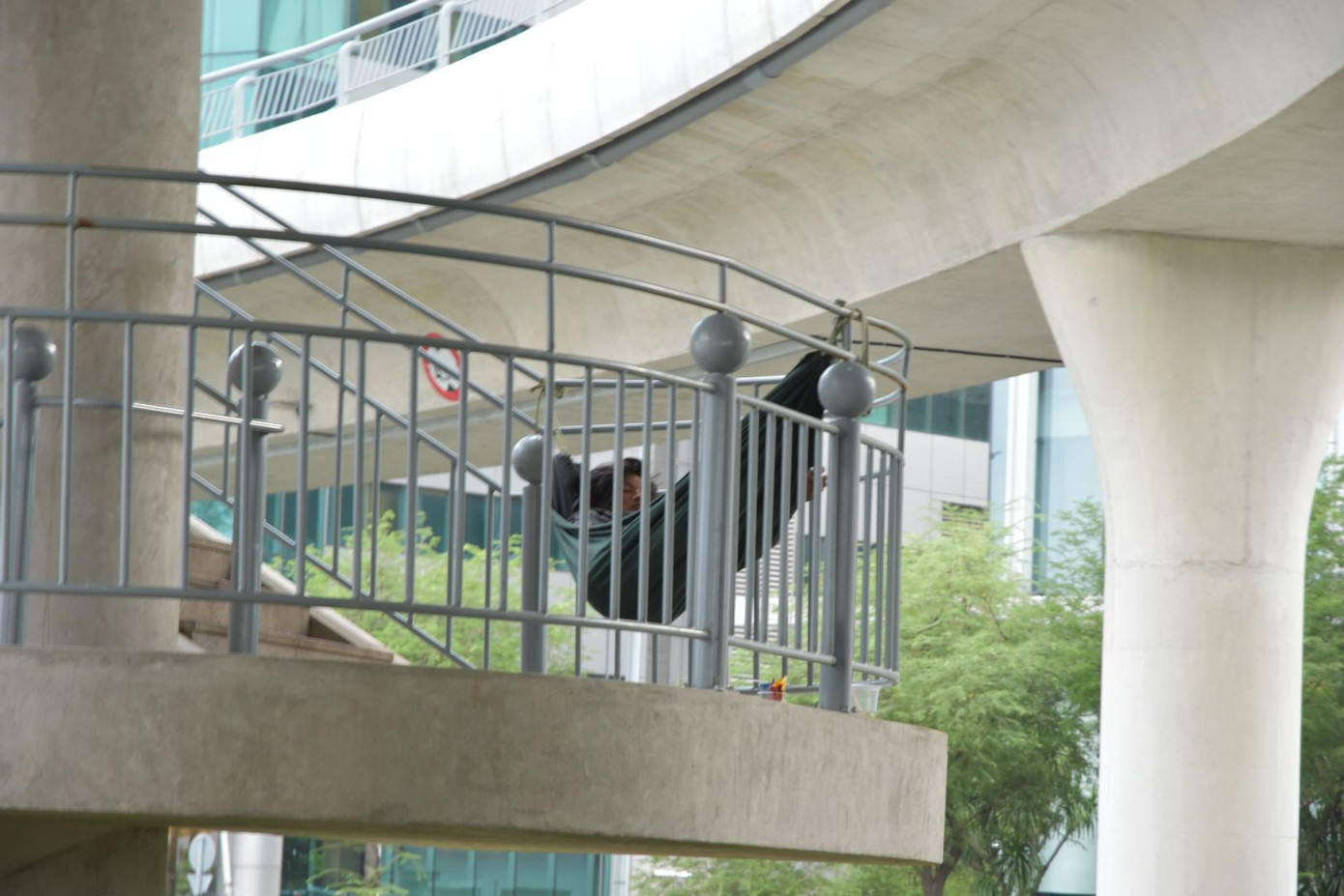 | Nhiều người vô tư vứt rác và mắc võng ngủ tại khu vực xung quanh chân cầu Thủ Thiêm 2 khiến nơi đây trở nên nhếch nhác. |
