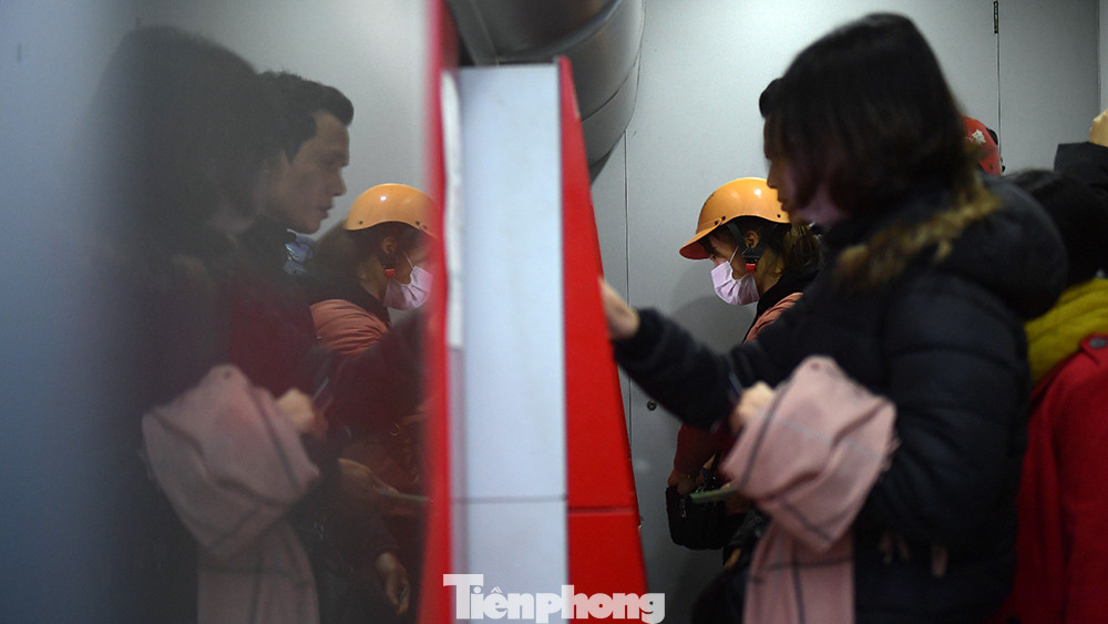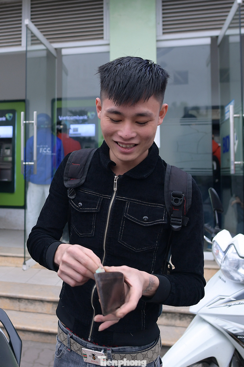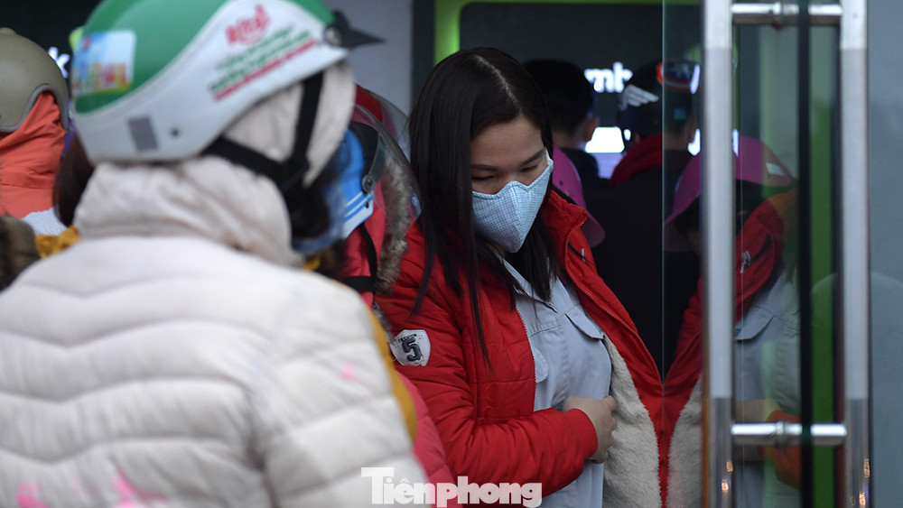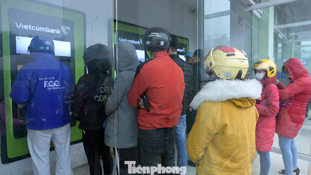Sau giờ tan ca chiều, rất đông công nhân đứng xếp hàng chờ rút tiền trước khi về quê ăn Tết.