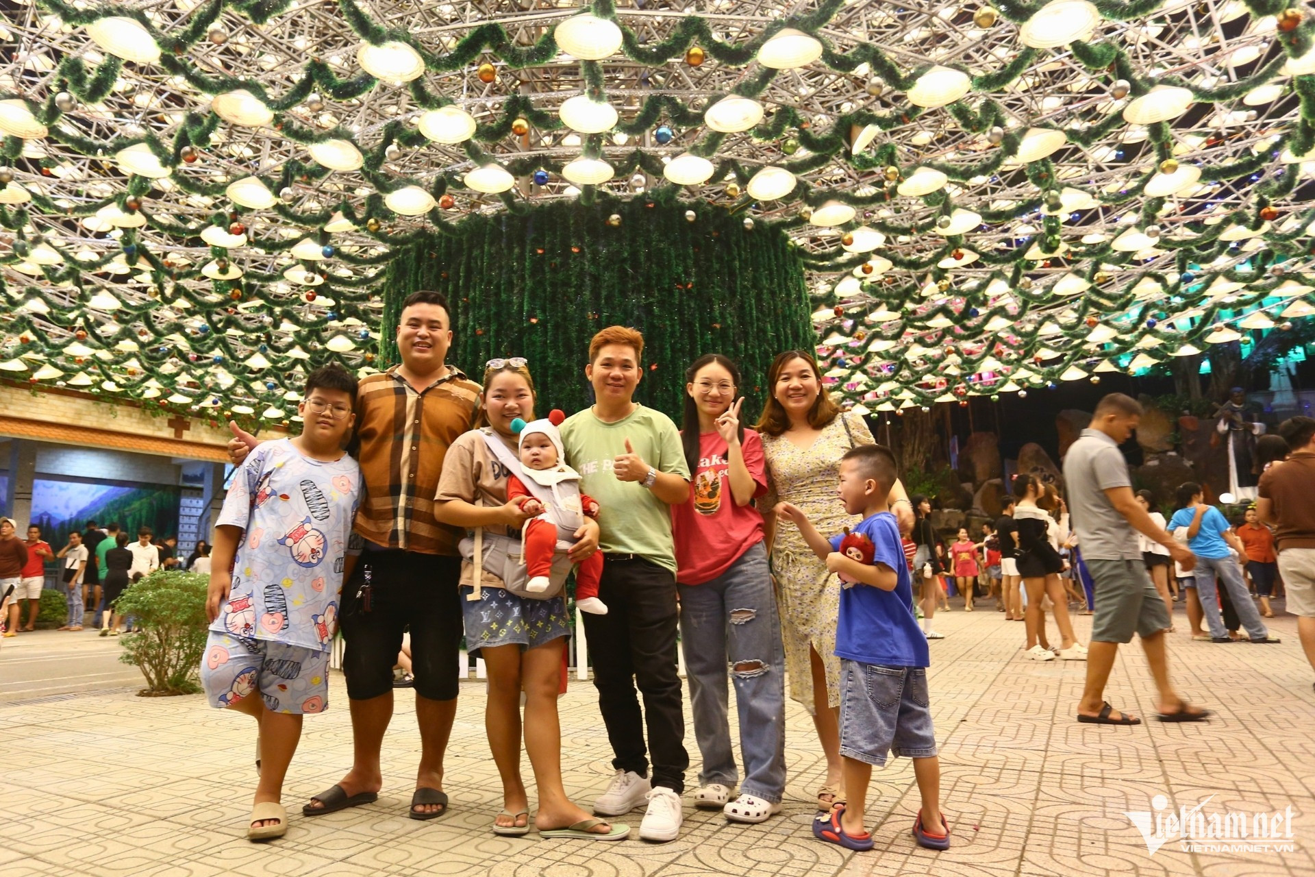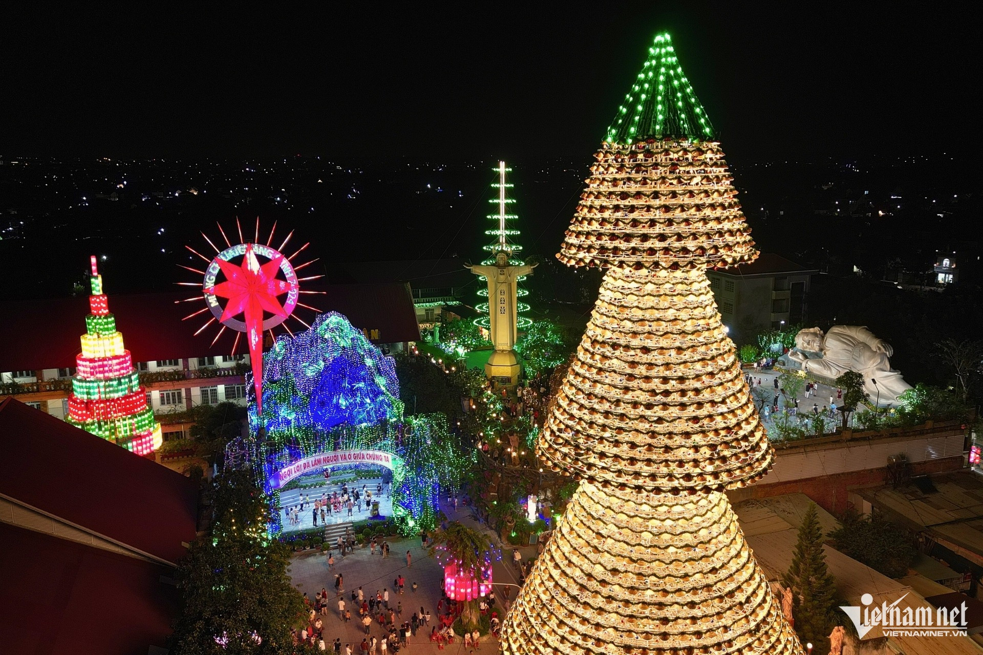 Những ngày cuối năm, không khí Giáng sinh tại Đồng Nai càng thêm rộn ràng khi cây thông nón lá tại nhà thờ Hà Phát (phường Tân Biên, TP Biên Hòa) chính thức lên đèn. Đông đảo người dân và du khách đổ về đây để chiêm ngưỡng và check-in. Bên cạnh cây thông, nhiều công trình khác như tượng Chúa, hang đá, tháp chuông... cũng được trang hoàng lộng lẫy.