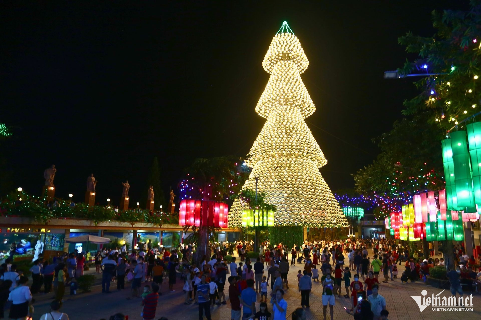 “Nhà thờ sẽ thắp sáng cây thông nón lá này đến tết Dương lịch. Để đảm bảo an toàn cho các thiết bị điện trên cây thông, mỗi tối nhà thờ sẽ tắt điện 15 phút để tránh quá tải”, một vị đại diện nói.