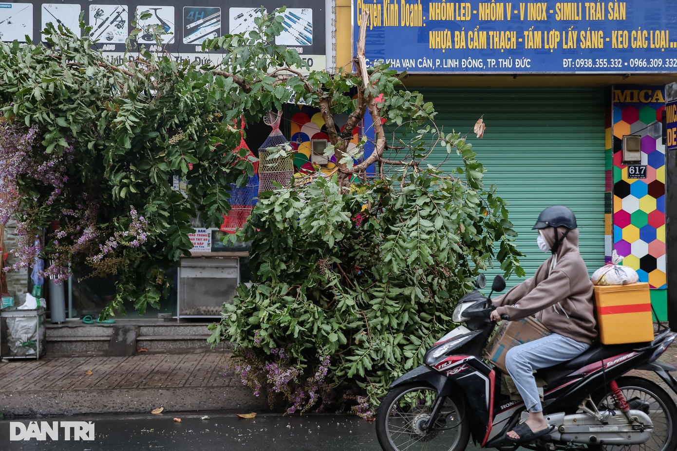 Trưa 5/5, một cơn mưa lớn kèm gió giật mạnh ở khu vực TP Thủ Đức (TPHCM) khiến nhiều cây xanh ngã đổ, hàng quán của người dân bị thổi bay, hư hỏng.