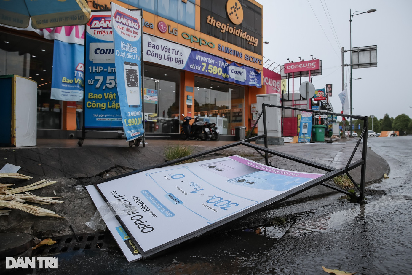 Ghi nhận của phóng viên trên đường Kha Vạn Cân, TP Thủ Đức, hàng loạt biển hiệu của các cửa hàng cũng bị gió làm ngã đổ.