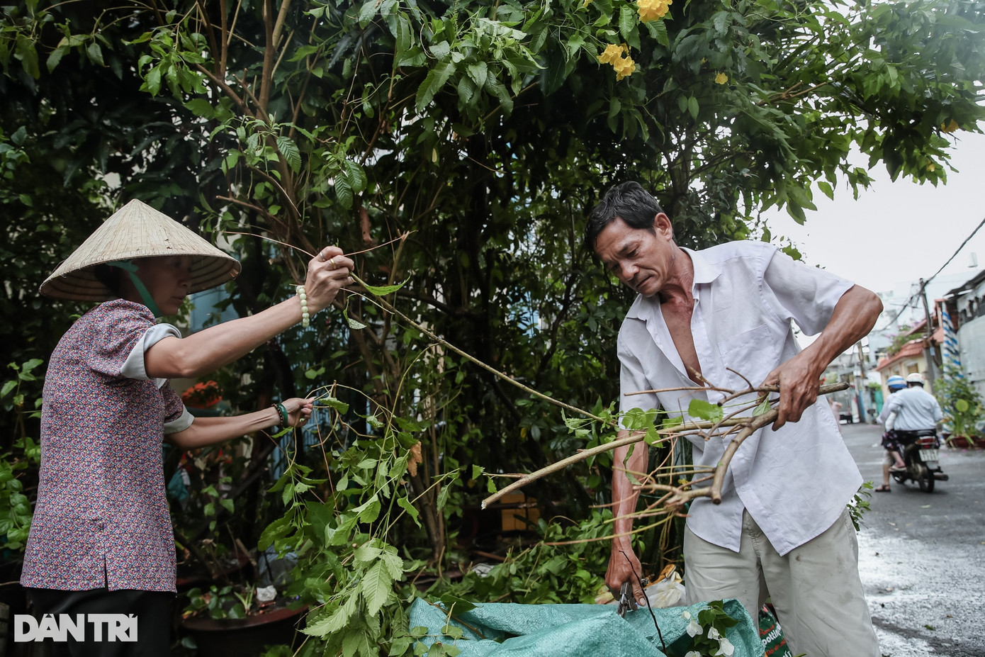 Vợ chồng ông Tuấn đang thu dọn lại những cành cây gãy sau cơn mưa. "Mưa đầu mùa thường kèm theo lốc, cũng may căn nhà của vợ chồng tôi không bị ảnh hưởng gì", ông Tuấn nói.