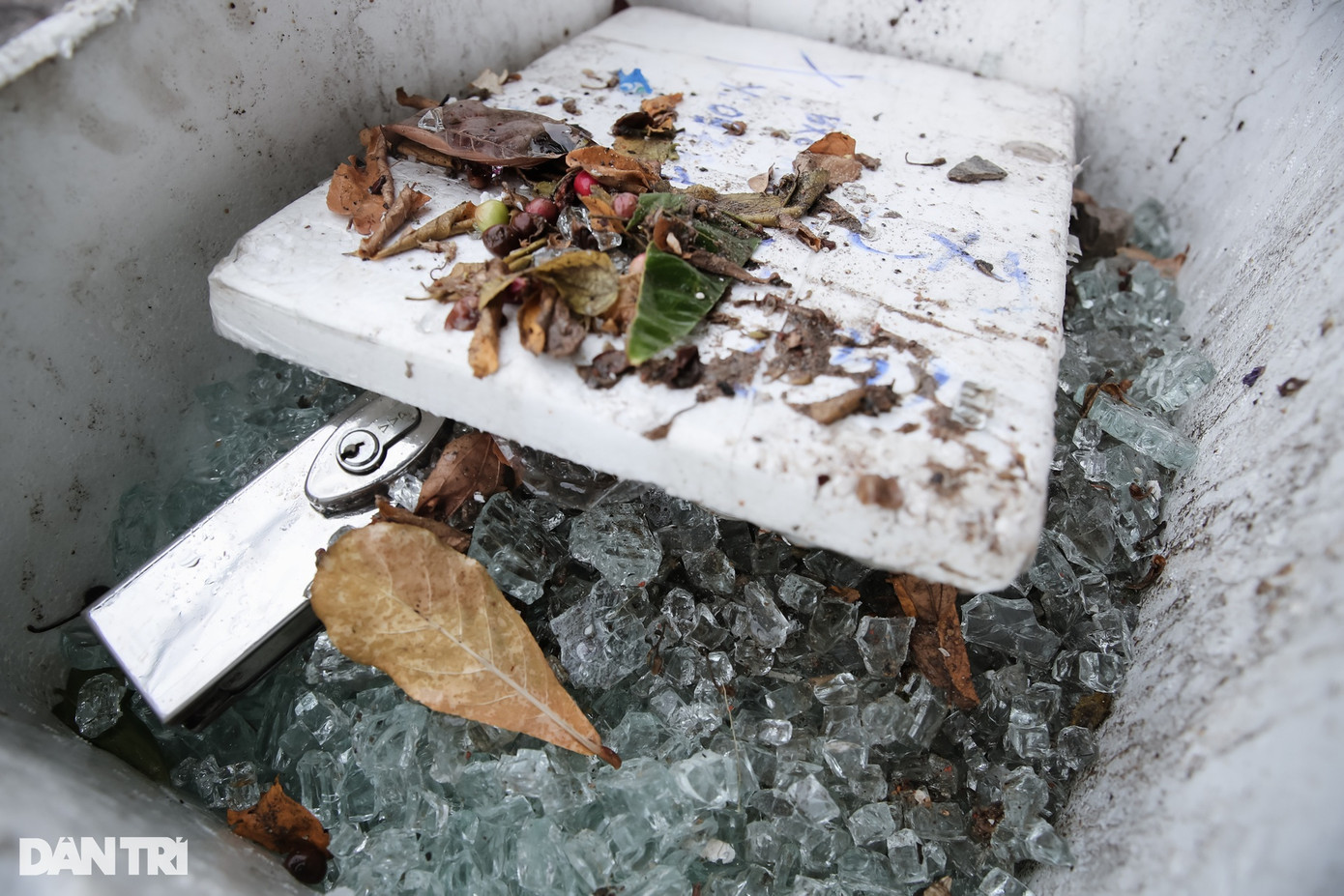 Biển hiệu của một quán cà phê cạnh cửa hàng chị Trang cũng nằm lăn lóc, hư hỏng.