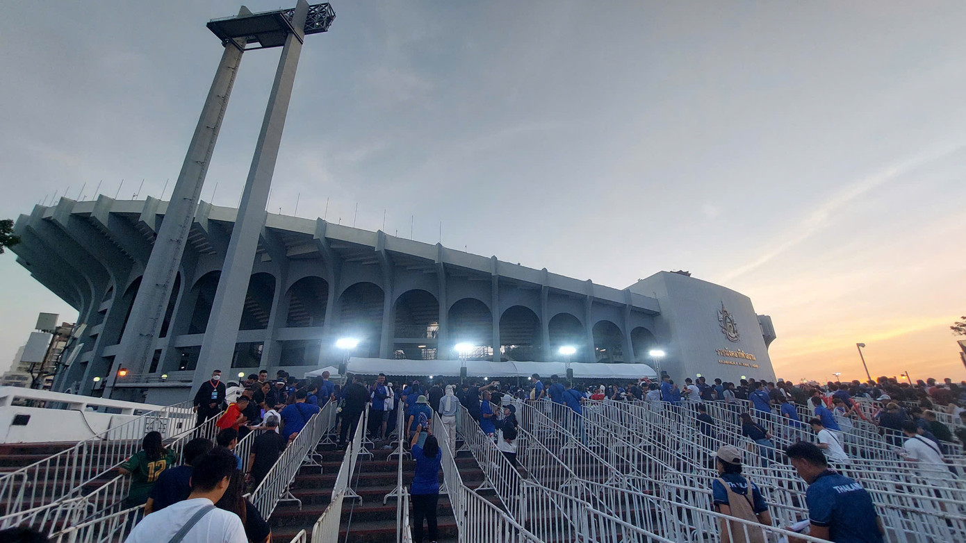 Ban tổ chức bắt đầu mở cửa đón cổ động viên vào sân Rajamangala từ 17h. Nhưng nhiều tiếng trước giờ bóng lăn, hàng nghìn người đã đổ về sân Rajamangala, trong đó có đông đảo người hâm mộ Việt Nam, để sẵn sàng cổ vũ cho trận chung kết lượt về ASEAN Cup 2024.
