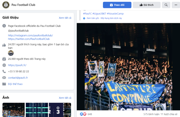 | Lượt theo dõi Pau FC tăng chóng mặt |