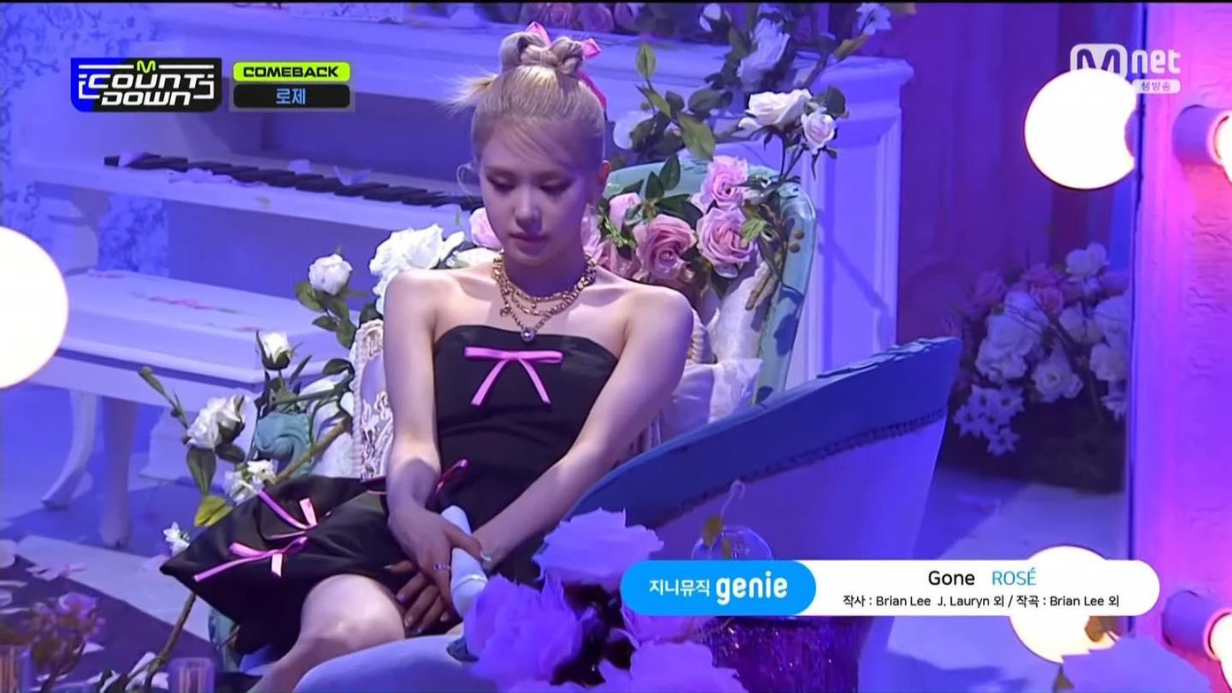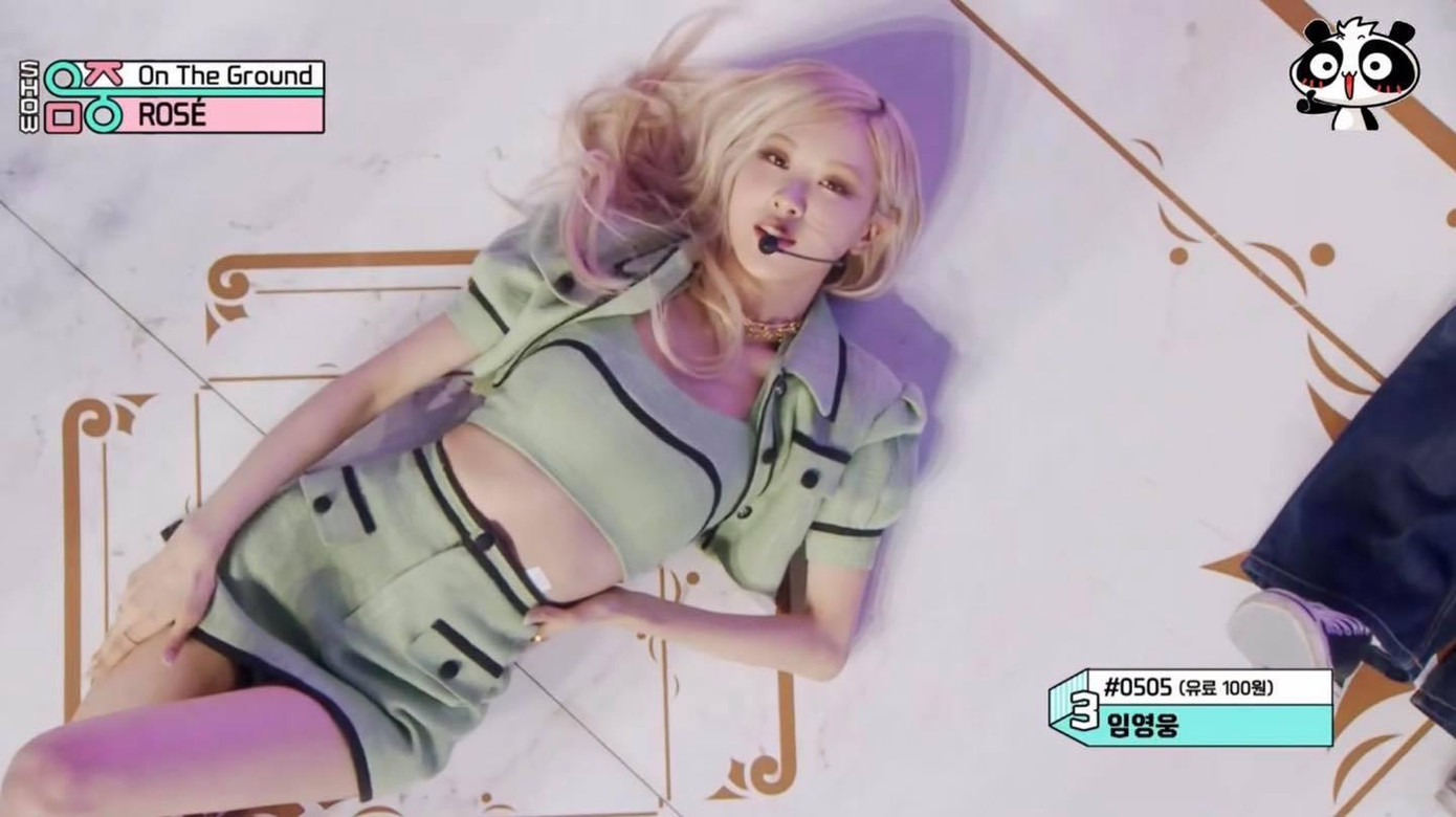 Ngay trong sân khấu solo đầu tiên ở chương trình Inkigayo, Rosé đã ghi điểm với hai set đồ thanh lịch và nổi bật. Đáng chú ý nhất là bộ váy hồng được cắt ngắn từ trang phục Rosé đã diện trong MV On The Ground.