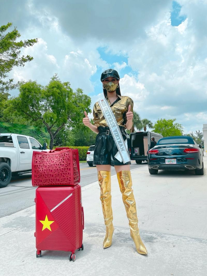 Ngay từ những giờ đầu tiên đặt chân đến Mỹ, Hoa hậu Khánh Vân đã lập tức cập nhật hình ảnh của mình. Cô giới thiệu bộ trang phục mình mặc hoàn toàn bằng tiếng Anh, tạm lược dịch như sau: “Xin chào Houston, Mỹ. Lần đầu tới Mỹ thật sự vô cùng phấn khích. Ngày đầu tiên, tôi chọn mặc chiếc váy này với hình lá cờ Việt Nam in ở phía trước ngực, và cờ Mỹ in ở phía bên cạnh gần vai. Điều này thể hiện cho tình hữu nghị giữa hai nước Việt - Mỹ, và Việt Nam luôn nằm trong tim tôi…”