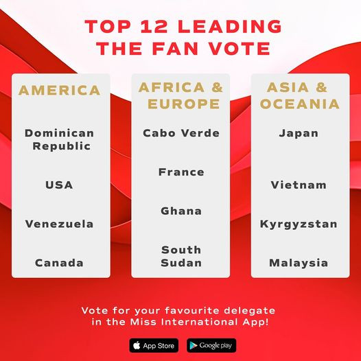 Hiện giờ, cổng bình chọn cho những thí sinh được yêu thích nhất Miss International 2024 đã mở cửa. Cô gái dẫn đầu bảng xếp hạng này sẽ lọt vào Top 20 chung cuộc và hiện giờ, Thanh Thủy đang là thí sinh có lượng phiếu bầu cao thứ hai khu vực châu Á Thái Bình Dương, chỉ sau đại diện của Nhật Bản. Hy vọng từ nay đến đêm Chung kết Miss International 2024, Thanh Thủy sẽ được khán giả Việt tích cực ủng hộ để có thứ hạng cao.