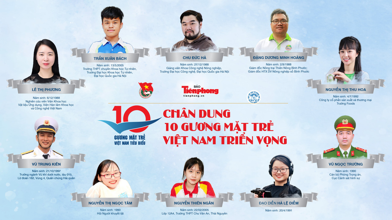 TPO - Ngày 6/3, T.Ư Đoàn TNCS Hồ Chí Minh, Quỹ Hỗ trợ Tài năng trẻ Việt Nam công bố 10 Gương mặt trẻ Việt Nam tiêu biểu và 10 Gương mặt trẻ Việt Nam triển vọng năm 2022. Báo Tiền Phong trân trọng giới thiệu chân dung 10 Gương mặt trẻ Việt Nam triển vọng năm 2022 cùng bảng thành tích ấn tượng.