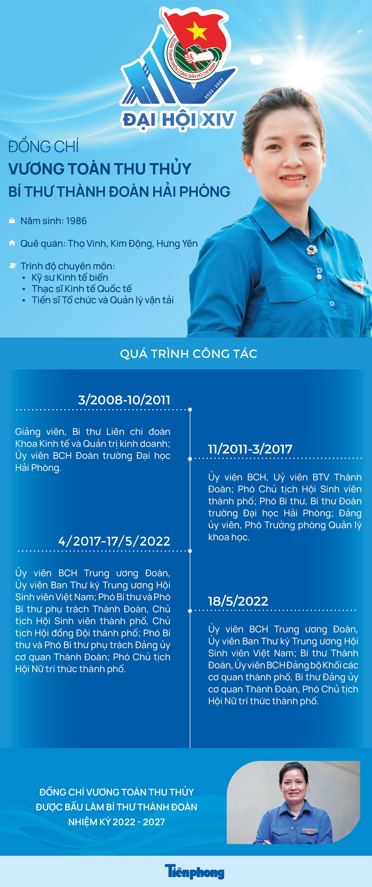 TPO - Tại Đại hội đại biểu Đoàn TNCS Hồ Chí Minh TP. Hải Phòng khóa XIV, nhiệm kỳ 2022-2027, chị Vương Toàn Thu Thủy - Bí thư Thành Đoàn Hải Phòng khoá XIII, tái đắc cử Bí thư Thành Đoàn Hải Phòng khóa XIV, với 100% phiếu bầu đồng ý.