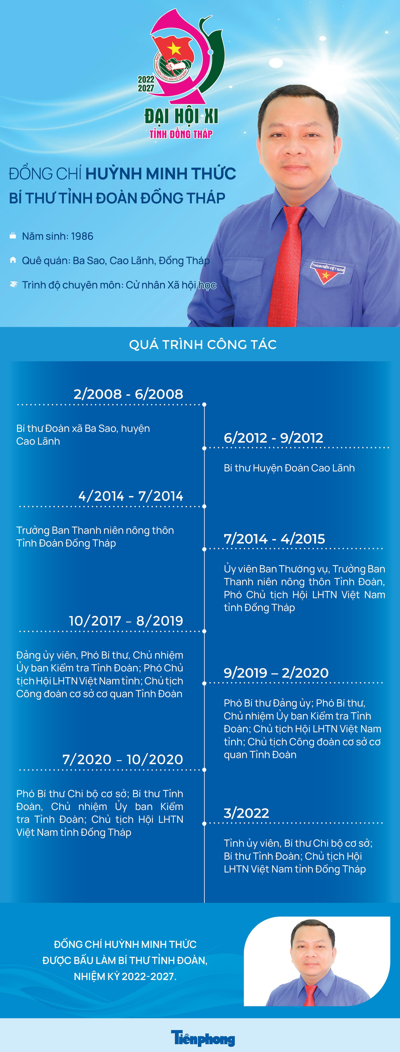 TPO - Tại Ðại hội đại biểu Đoàn TNCS Hồ Chí Minh tỉnh Đồng Tháp lần thứ XI, nhiệm kỳ 2022 – 2027, anh Huỳnh Minh Thức - Bí thư Tỉnh Đoàn khóa X, được Đại hội bầu làm Bí thư Tỉnh Đoàn khóa XI, nhiệm kỳ 2022 – 2027, với tỷ lệ 99,62% phiếu bầu đồng ý.