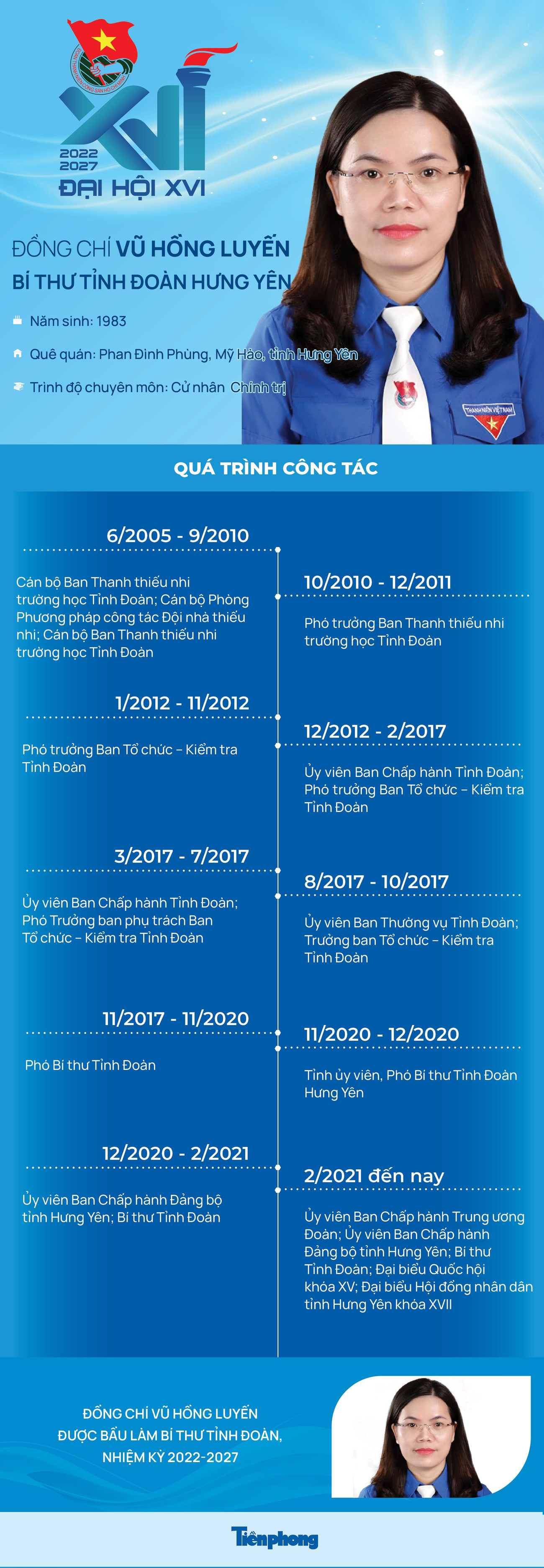 TPO - Chị Vũ Hồng Luyến – Bí thư Tỉnh Đoàn Hưng Yên khóa XV, tái đắc cử Bí thư Tỉnh Đoàn Hưng Yên khóa XVI nhiệm kỳ 2022-2027.