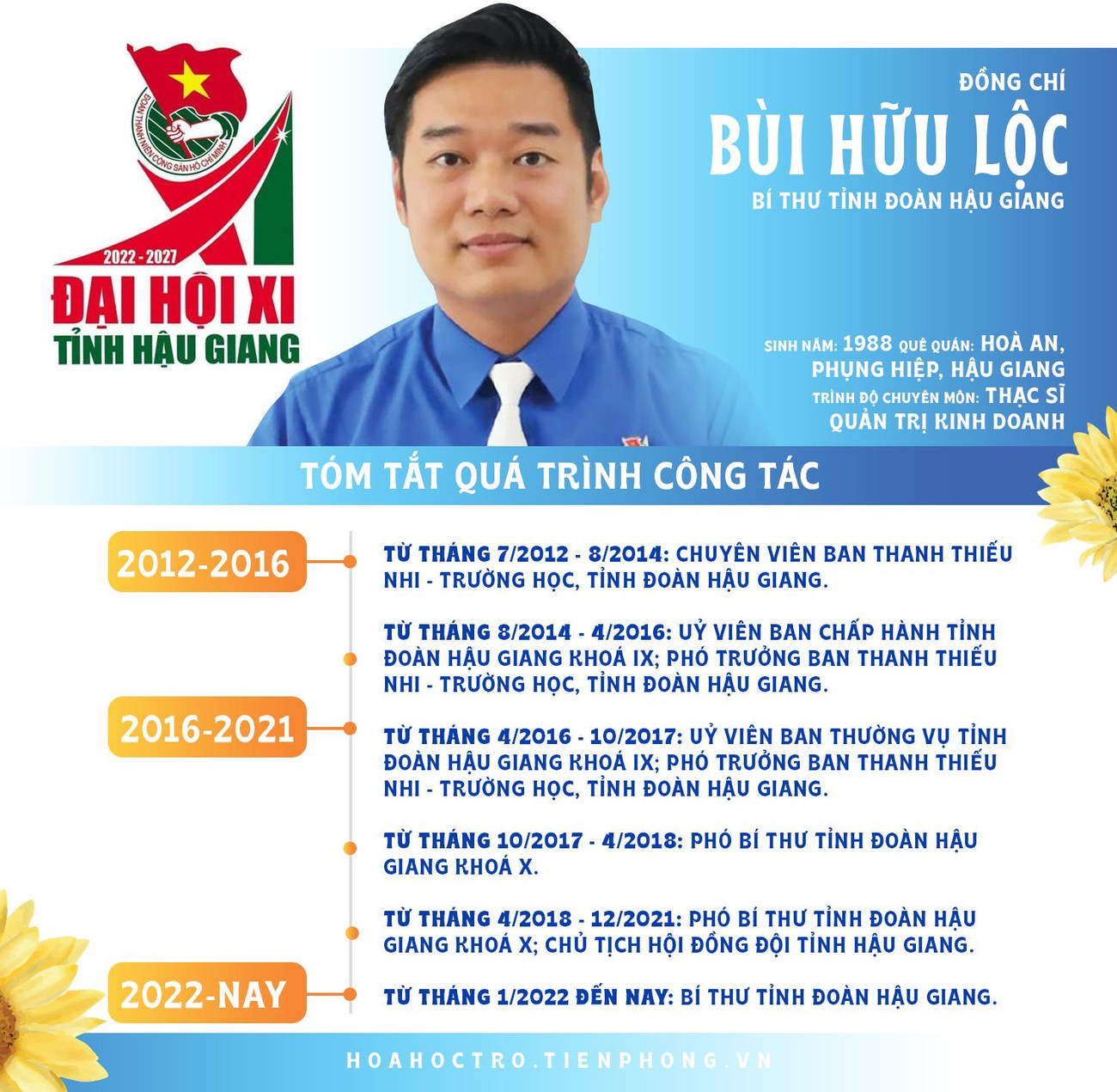 Tại phiên họp thứ nhất Ban Chấp hành Đoàn TNCS Hồ Chí Minh tỉnh Hậu Giang, nhiệm kỳ 2022 - 2027, đồng chí Bùi Hữu Lộc - Bí thư Tỉnh Đoàn Hậu Giang khóa X, nhiệm kỳ 2017 - 2022, được tín nhiệm bầu làm Bí thư Tỉnh Đoàn khóa XI, nhiệm kỳ 2022 - 2027. Đồng chí Trương Minh Hoàng, Phó Bí thư Tỉnh Đoàn khóa X cũng được tín nhiệm bầu làm Phó Bí thư khóa XI, cả hai được bầu với tỷ lệ 100%.
