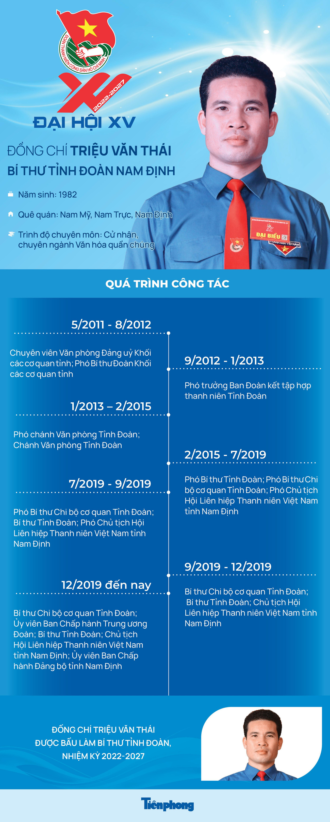 TPO - Tại Hội nghị lần thứ nhất Ban Chấp hành Tỉnh Đoàn Nam Định khóa XV, nhiệm kỳ 2022- 2027, anh Triệu Văn Thái - Bí thư Tỉnh Đoàn Nam Định khóa XIV, nhiệm kỳ 2017 - 2022, được tín nhiệm bầu tái đắc cử Bí thư Tỉnh Đoàn Nam Định khóa XV.