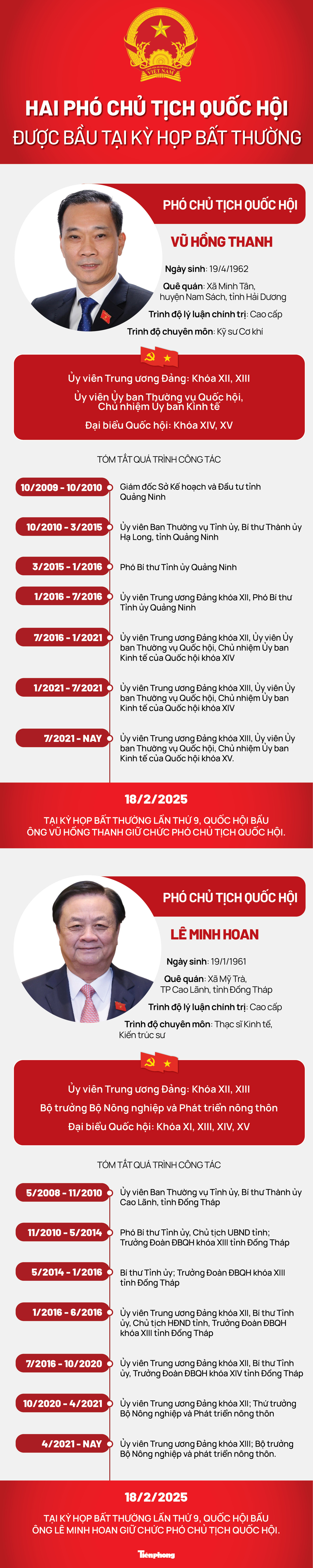 TPO - Ngày 18/2, tại kỳ họp bất thường lần thứ 9, Quốc hội khóa XV đã bầu ông Lê Minh Hoan và ông Vũ Hồng Thanh giữ chức Phó Chủ tịch Quốc hội nhiệm kỳ 2021 - 2026.