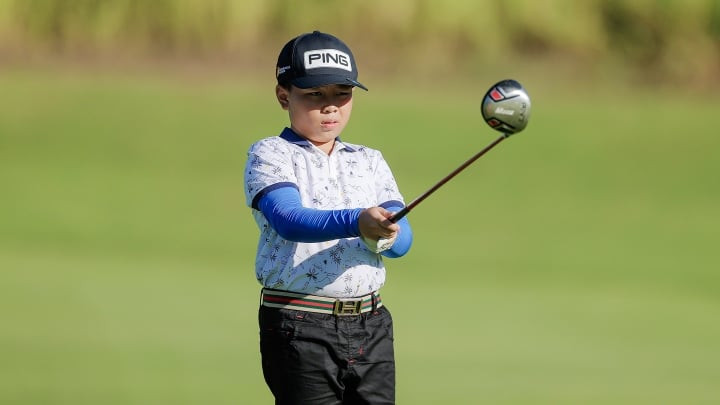 “Chảo lửa” Vinpearl Golf Nam Hội An mang đến nhiều thử thách đối với 79 VĐV ở vòng 2. Chỉ xuất hiện một điểm âm duy nhất của vận động viên thuộc bảng U9 - Võ Tá Hoàng Nguyên. Tuyển thủ sinh năm 2014 khởi đầu không may mắn cùng 2 bogey và 1 double bogey.