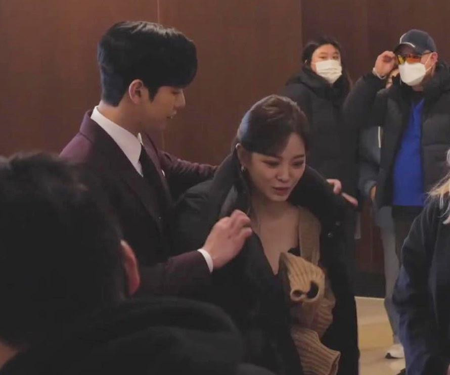 Trong một video hậu trường khác, sự ga lăng của "chim thủy tổ" Hyo Seop dành cho "nàng bạch tuộc" Sejeong một lần nữa ghi điểm mạnh mẽ trong mắt khán giả. Nam diễn viên để ý thấy bạn diễn đang lạnh vì chỉ mặc chiếc khoác mỏng, bên trong là chiếc đầm dạ hội hai dây. Hyo Seop đã mượn ngay chiếc áo của nhân viên rồi tự tay khoác cho Sejeong.