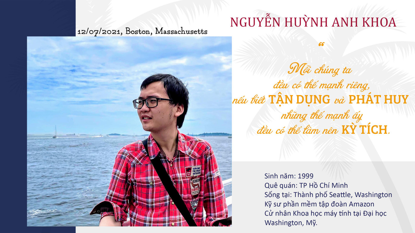 Được biết, Anh Khoa hiện là Kỹ sư phần mềm tại Tập đoàn Amazon (Mỹ) và với những thành quả bước đầu của bạn trong lĩnh vực khoa học công nghệ, bạn có thông điệp gì muốn gửi gắm tới bạn trẻ đã và đang bắt đầu lựa chọn con đường sự nghiệp?