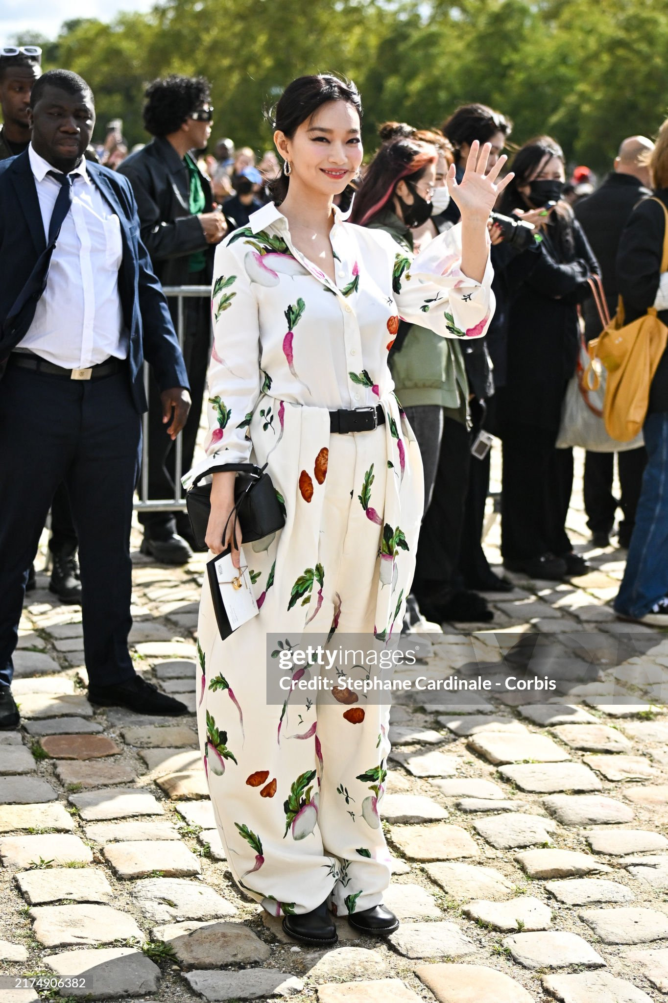 Đại sứ Shin Min Ah thanh lịch trong bộ trang phục tông trắng, họa tiết hoa nhí. Nữ diễn viên rạng rỡ, khoe nhan sắc trẻ trung không tỳ vết qua ống kính của Getty Images.