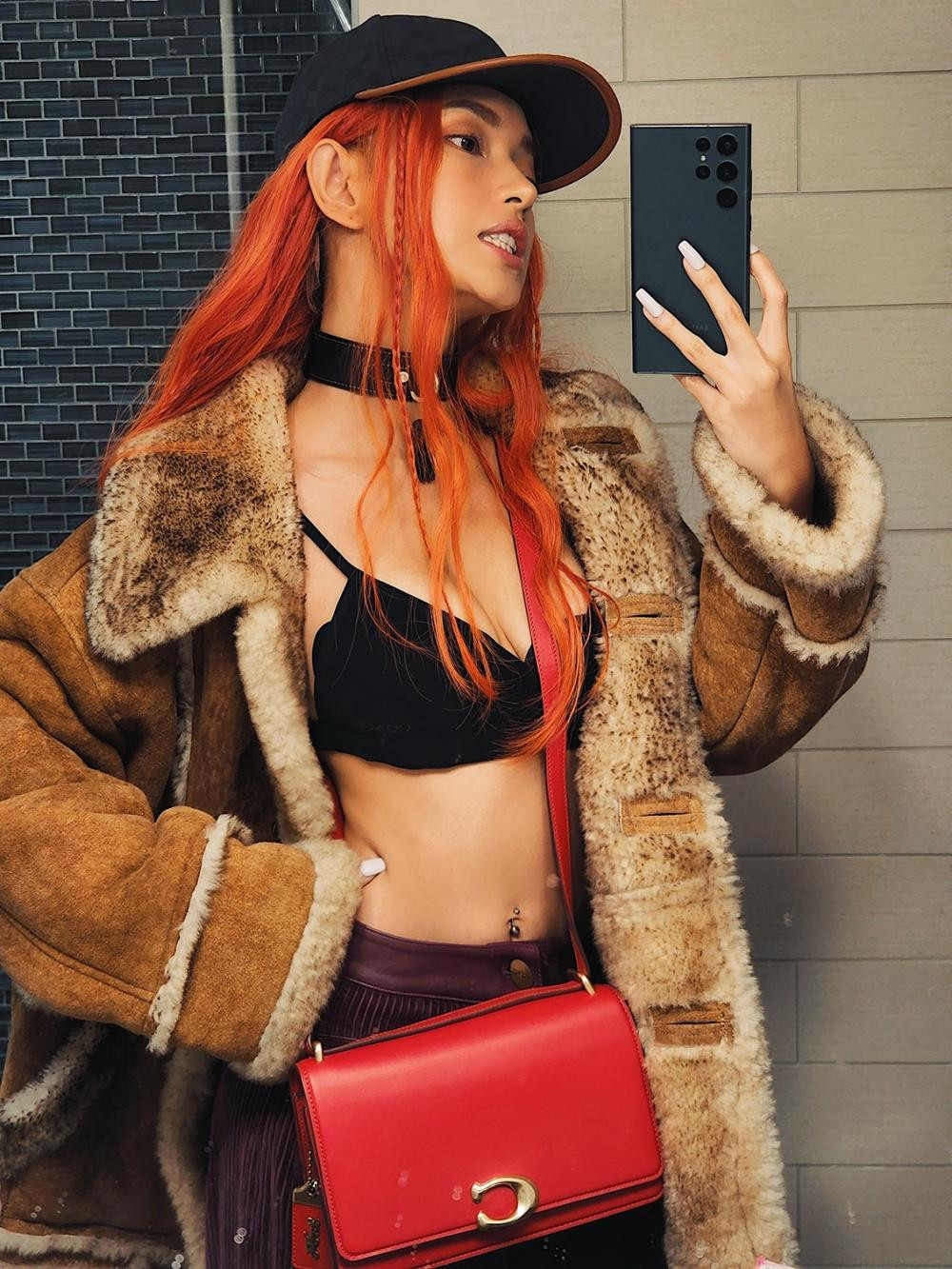 Ngồi tại vị trí front row (hàng ghế đầu) trong show diễn này, nàng fashionista sinh năm 1997 xuất hiện khác lạ trong các thiết kế từ BST Thu Đông 2022 của Coach cùng mái tóc cam rực rỡ cá tính.