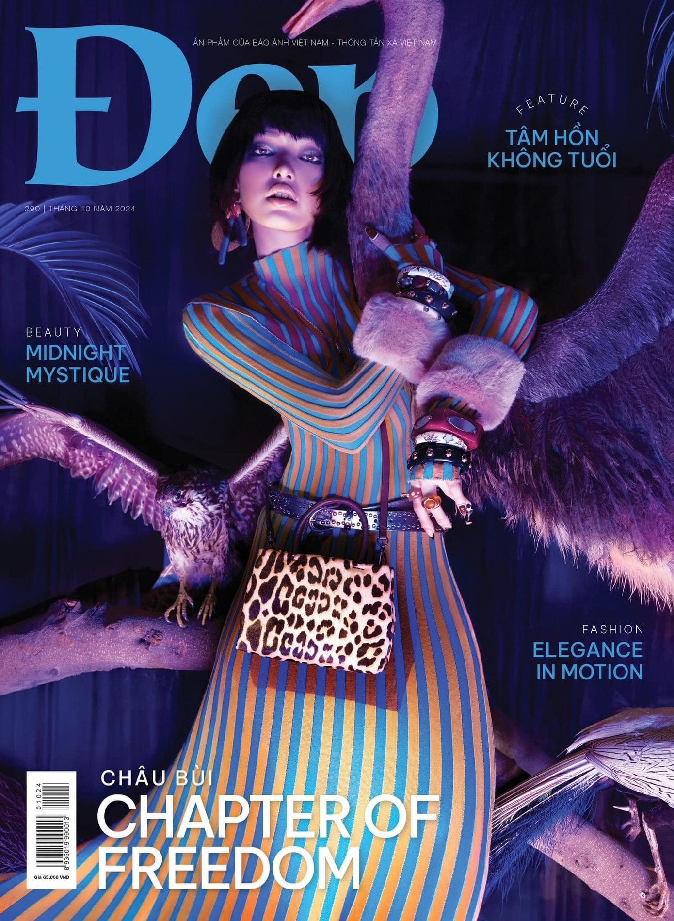 Trước đó, Châu Bùi xuất hiện trên trang bìa tạp chí Đẹp số 290 trong tạo hình mang đậm tinh thần mùa Halloween. Cô diện trang phục thuộc bộ sưu tập Thu Đông 2024 của Parfois.