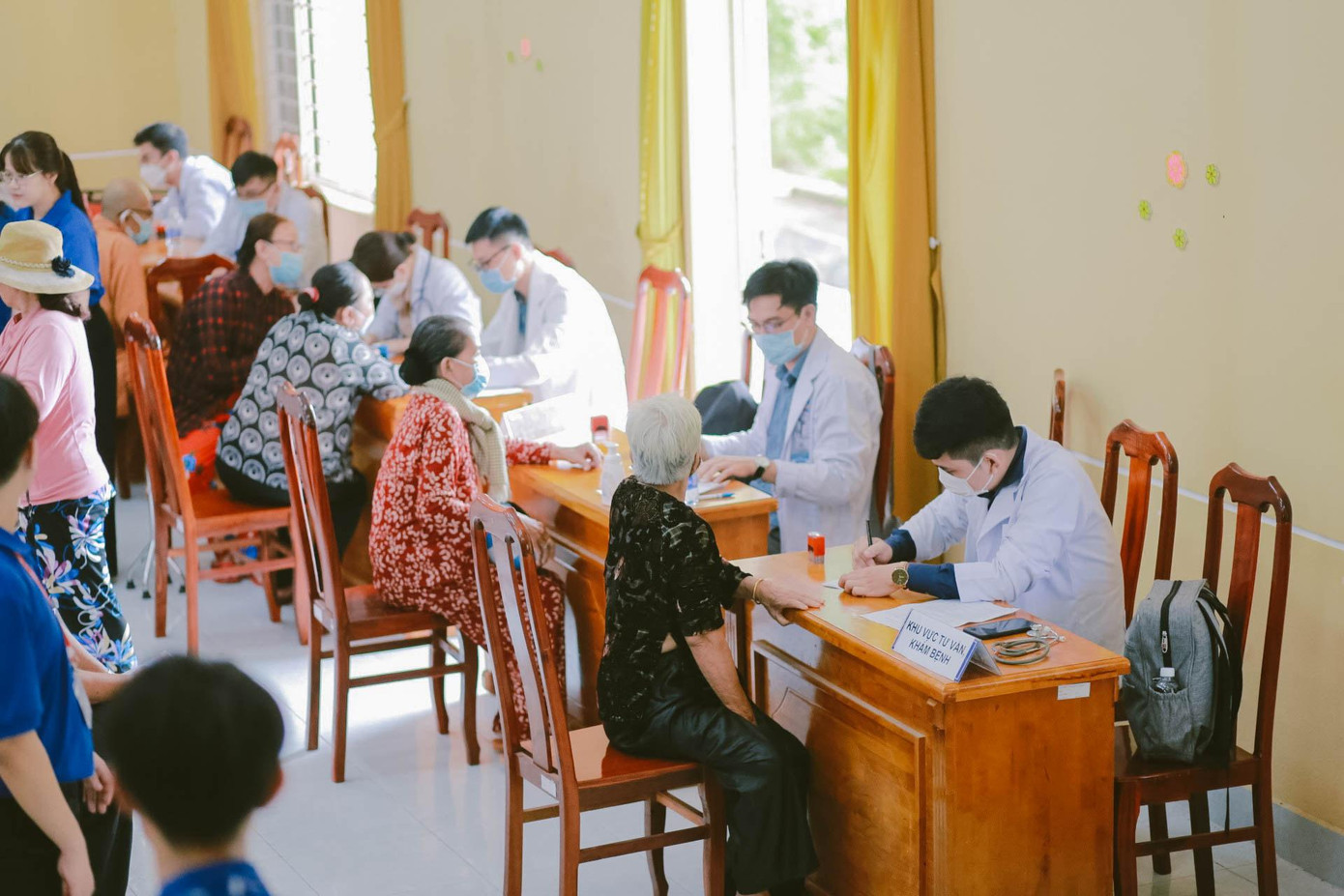 | Hoạt động khám, cấp thuốc cho người dân huyện Cần Giờ (TP HCM) được các chiến sĩ Mùa hè xanh trường Học viện cán bộ Thành phố triển khai. |
