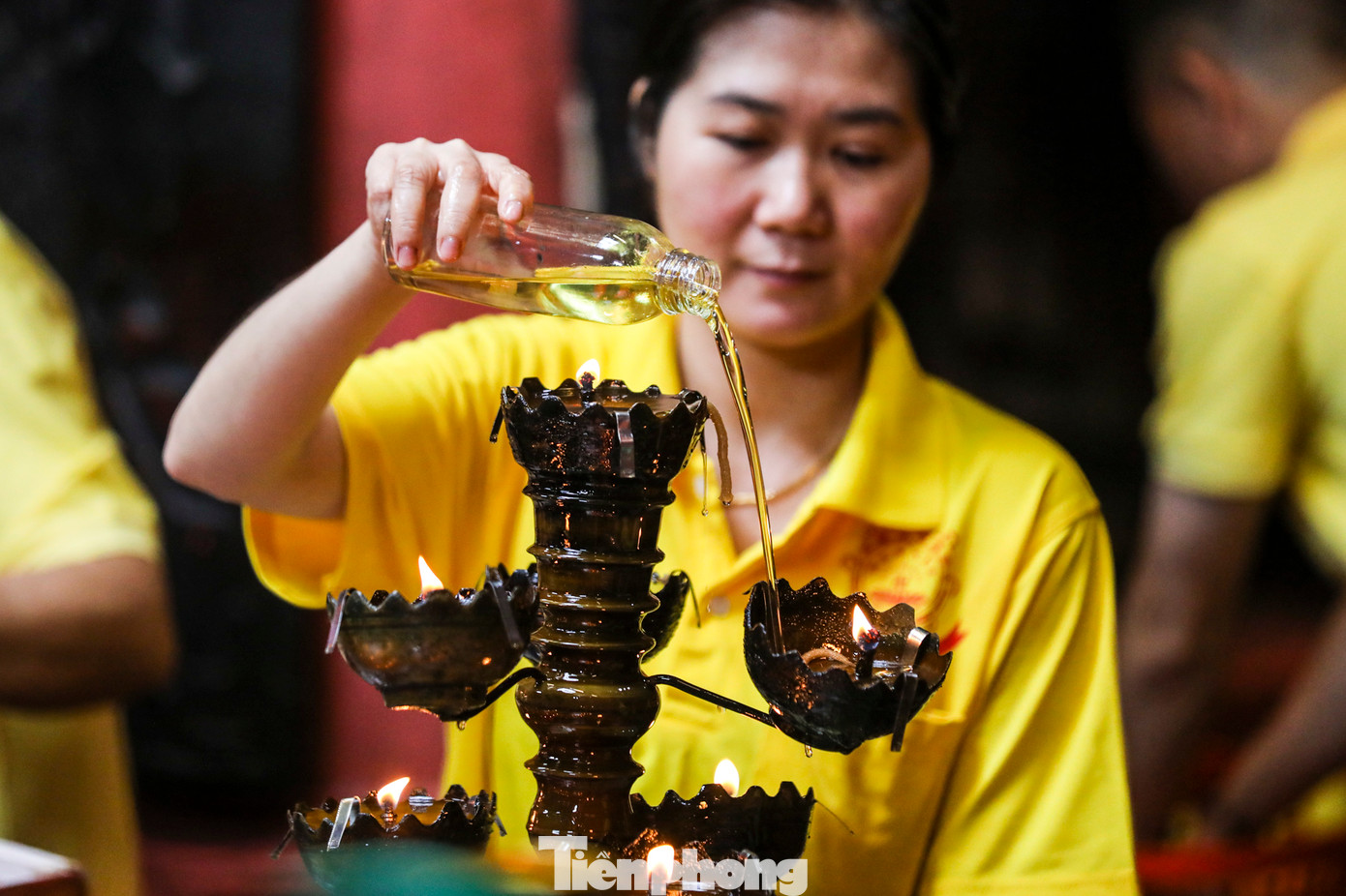 | Dầu được rót sẵn trong chai nhựa, người đến hành hương có thể mua một chai dầu sau đó rót vào trong các bát đèn dầu ở trước điện, kèm theo lời khấn nguyện mong cầu sức khoẻ, công ăn việc làm suôn sẻ, đắc tài đắc lộc. |