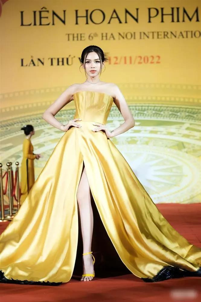 Mới đây, Đỗ Thị Hà đã tỏa sáng rực rỡ tại lễ khai mạc Liên hoan phim Quốc tế Hà Nội 2022. Nàng hậu diện bộ váy dài màu vàng có phần đuôi dài tới 2 mét thướt tha trên thảm đỏ, được khen là lộng lẫy như công chúa Belle trong phim Người đẹp và Quái vật.