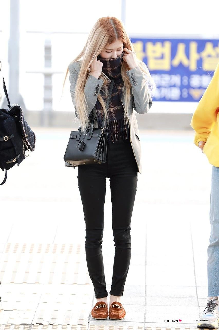 Nhiều nữ idol từng trở nên nặng nề khi đi boots cao cổ đế bằng như thế này, nhưng Rosé thì lại rất hợp. Đó là nhờ cô có đôi chân vừa dài vừa thon, tỷ lệ cơ thể rất đẹp nên đi boots đế thấp vẫn tôn dáng.
