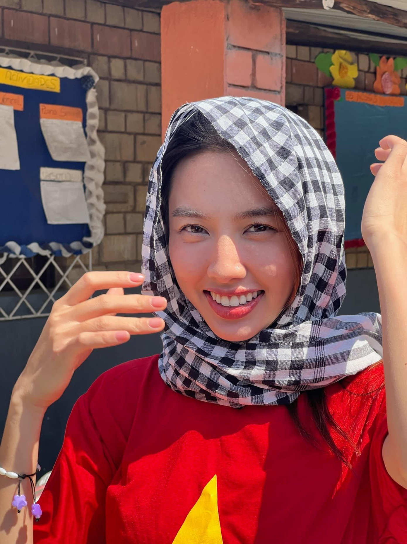 Trong thời gian làm từ thiện ở Angola, Thùy Tiên thường xuyên để mặt mộc và chỉ thoa son. Vậy mà nàng hậu vẫn sẵn sàng chụp ảnh cận mặt, khoe gương mặt cân đối thanh tú và làn da đẹp không tì vết.