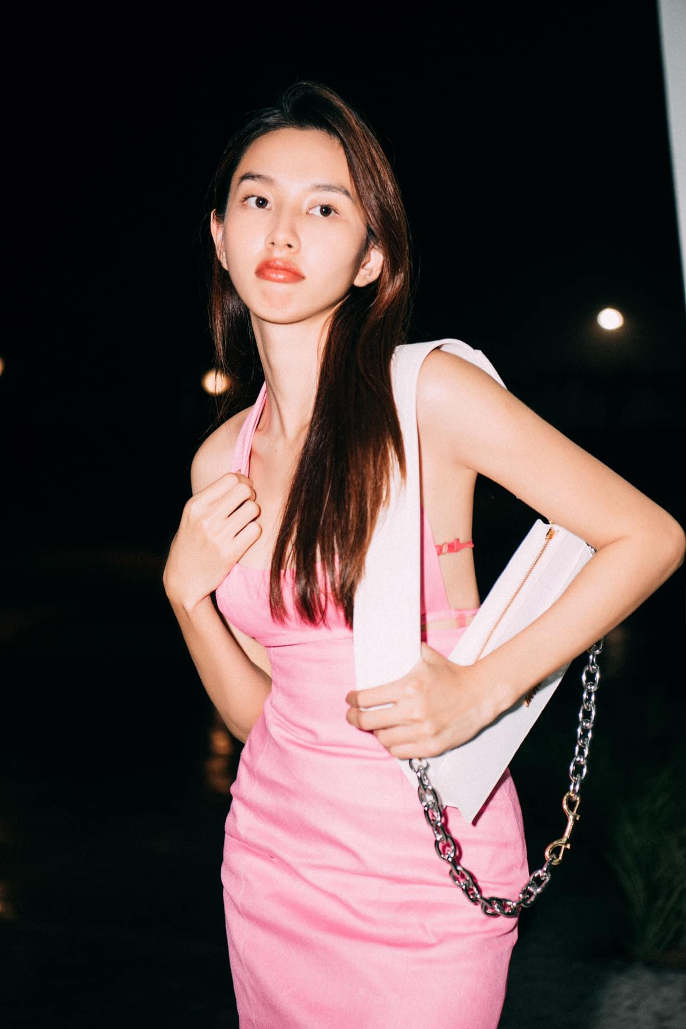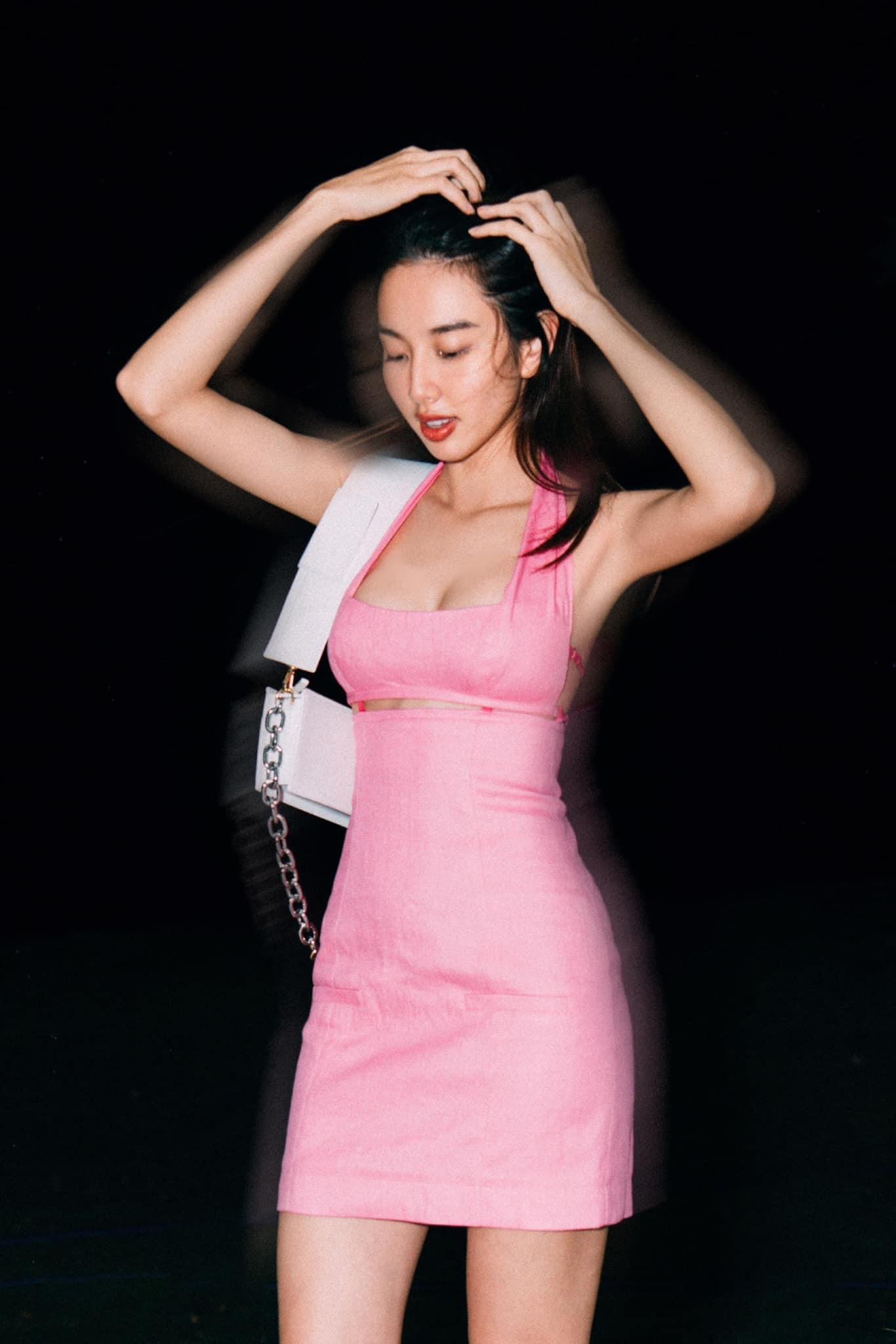 Ngay sau khi trở về từ chuyến công tác châu Âu, Thùy Tiên đã nhanh chóng trở thành người mẫu kết màn trong chương trình Vietnam Beauty Fashion Fest. Trong buổi tổng duyệt, nàng hậu chọn một bộ váy màu hồng đơn giản nhưng vẫn khoe được thân hình cực chuẩn.