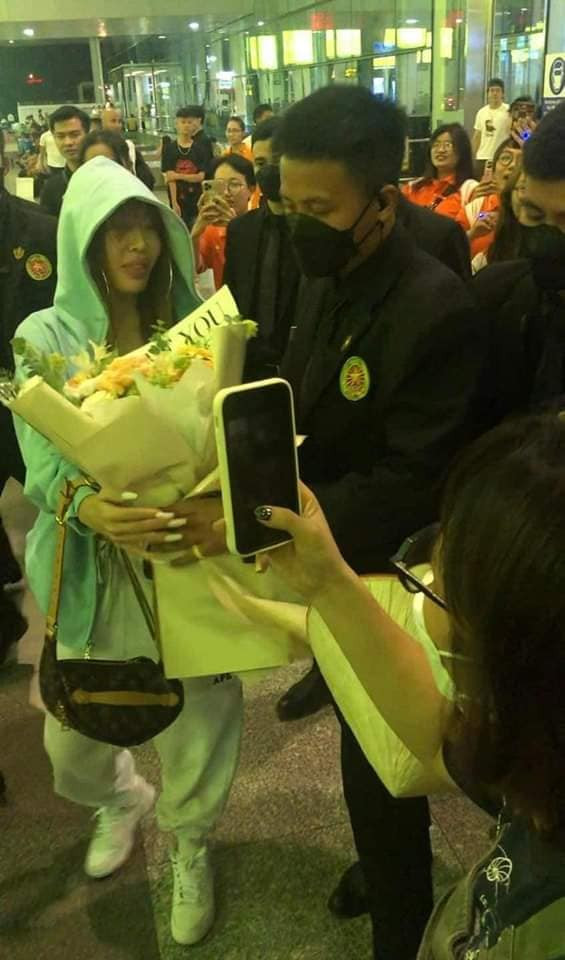 Nữ rapper nhận được nhiều quà từ fan tại sân bay.