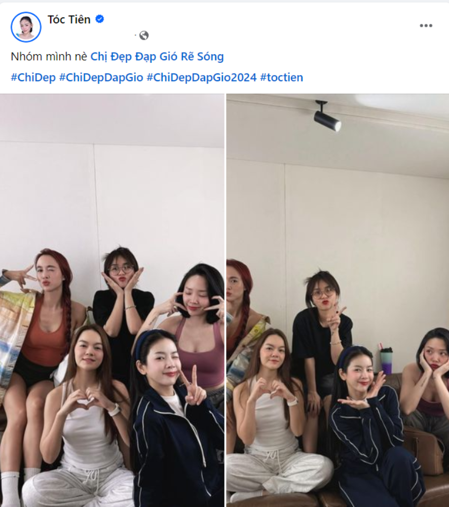 Mới đây, nữ ca sĩ Tóc Tiên đã chia sẻ hình ảnh "nhóm mình" tại Chị Đẹp Đạp Gió Rẽ Sóng. Giọng ca 906090 chụp ảnh cùng các Chị Đẹp như Phạm Quỳnh Anh, DJ Mie, MisThy và Vũ Ngọc Anh. Bài viết nhanh chóng nhận được sự quan tâm lớn từ khán giả. Hầu hết netizen đều cho rằng đây chính là đội hình của nữ ca sĩ trong Công diễn 1.
