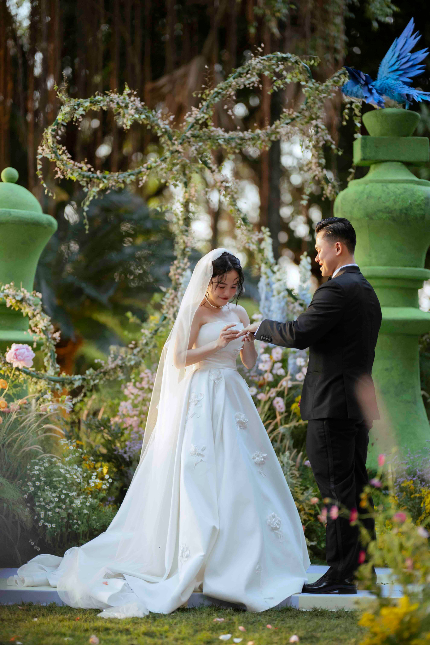 Thái Trinh và Thái Minh tổ chức lễ cưới sau khoảng 1 năm yêu nhau. Hôn lễ diễn ra ấm cúng với sự tham dự của người thân, bạn bè và nhiều đồng nghiệp làng giải trí. Không gian tiệc được thiết kế như một khu vườn cổ tích, lấy cảm hứng từ sở thích cờ vua của cả hai. Điểm nhấn là bàn cờ vua khổng lồ với quân vua và hậu tượng trưng cho cô dâu, chú rể, cùng hình ảnh đôi chim, biểu tượng cho hai cánh chim từ phương Bắc và phương Nam gặp gỡ và yêu thương nhau.