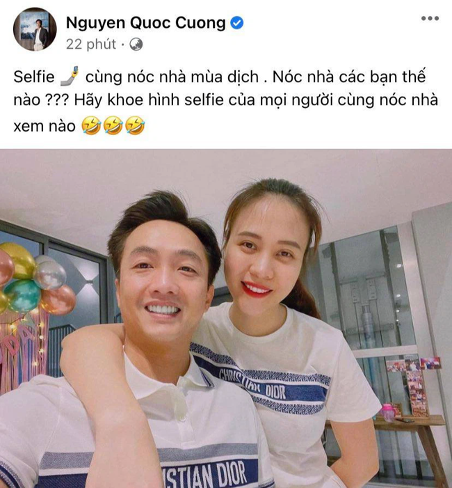 Mới đây, Cường 'Đôla' đăng hình hai vợ chồng mặc áo đôi kèm theo bình luận "Chụp ảnh cùng "nóc nhà" mùa dịch. Nóc nhà các bạn thế nào? Hãy khoe hình của mọi người cùng nóc nhà xem nào". Doanh nhân phố núi không ngại gọi vợ là “nóc nhà” chứng tỏ trong gia đình, Đàm Thu Trang là nhân vật quyền lực nhất.
