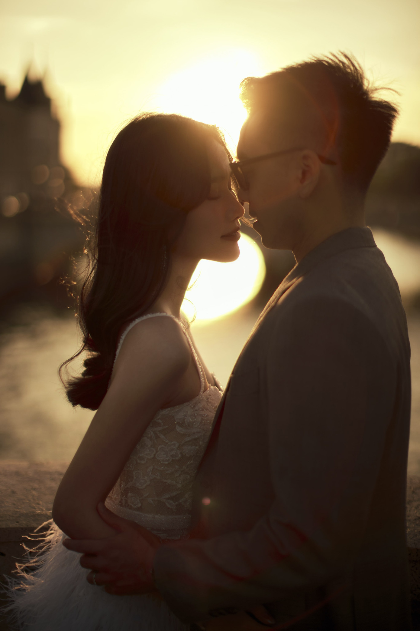 Với khung cảnh lãng mạn dưới chân tháp Eiffel, Phương Anh chọn cho mình hai thiết kế với hai phong cách khác nhau. Kiểu dáng ngắn trẻ trung kết hợp giữa chất liệu ren và tua rua là điểm cộng cho toàn bộ thiết kế. Bên cạnh đó, cặp đôi còn có những bức ảnh đậm chất ngôn tình dưới ánh hoàng hôn buổi xế chiều tại Pháp.
