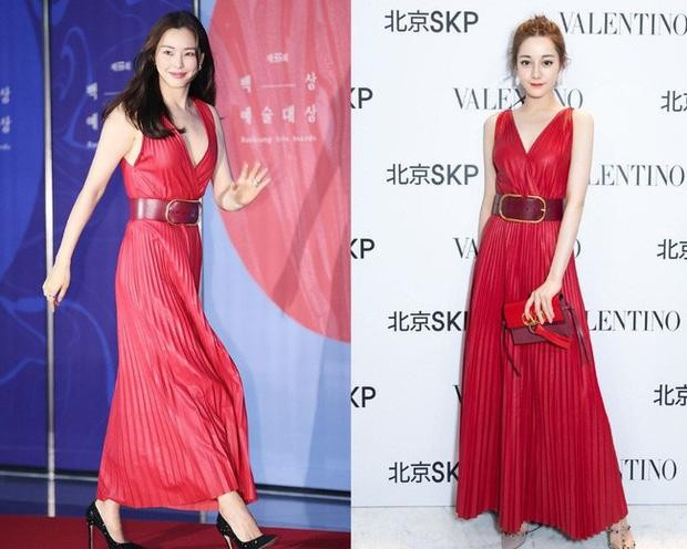 Trùng hợp thay, Quan Hiểu Đồng cũng từng diện đúng mẫu áo này và mặc giống như thiết kế gốc. Kết quả là phần tay xòe quá lớn đã khiến vóc dáng của nữ diễn viên bị chiếc áo che lấp hết.