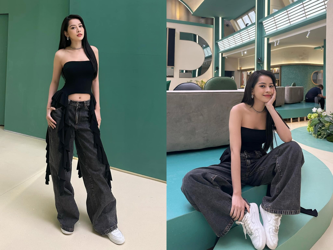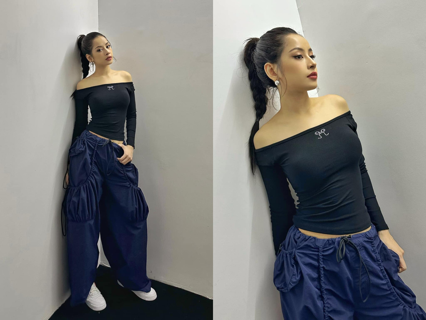 Chi Pu cũng rất khéo thay đổi hình ảnh. Khi tập luyện thì diện quần ống rộng, áo ôm để tiện tập luyện còn khi ghi hình phỏng vấn hay hậu trường thì mặc váy điệu đà, nữ tính để chứng minh cô nàng diện phong cách gì cũng đẹp.