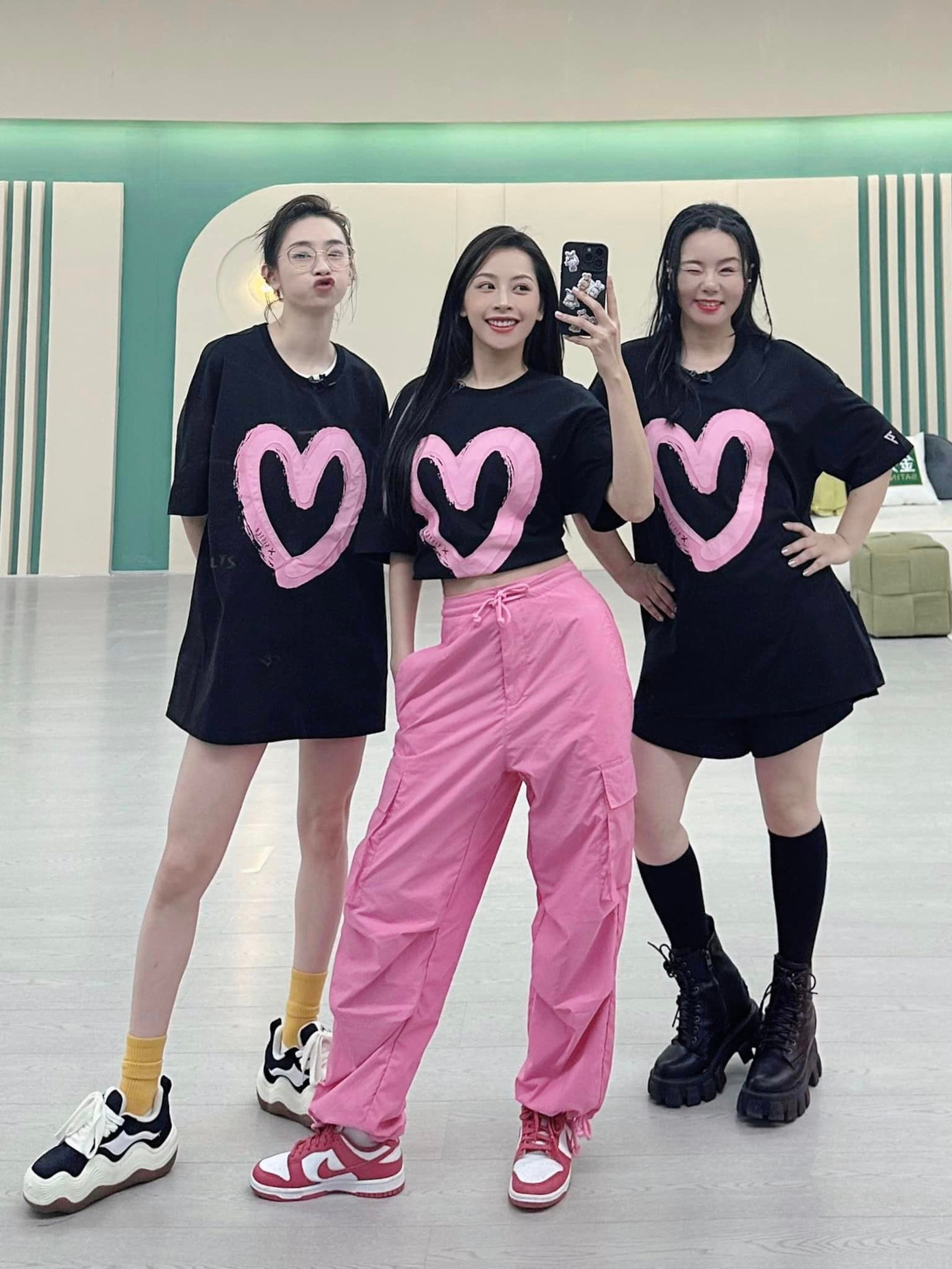 Khi chụp ảnh chung cùng cả đội, Chi Pu chỉ cần diện một chiếc quần hồng rực rỡ là nhanh chóng nổi nhất đội hình. Hoặc set đồ màu hồng ngọt ngào khiến Chi Pu phải tự nhận là trông mình trẻ trung như nữ sinh.