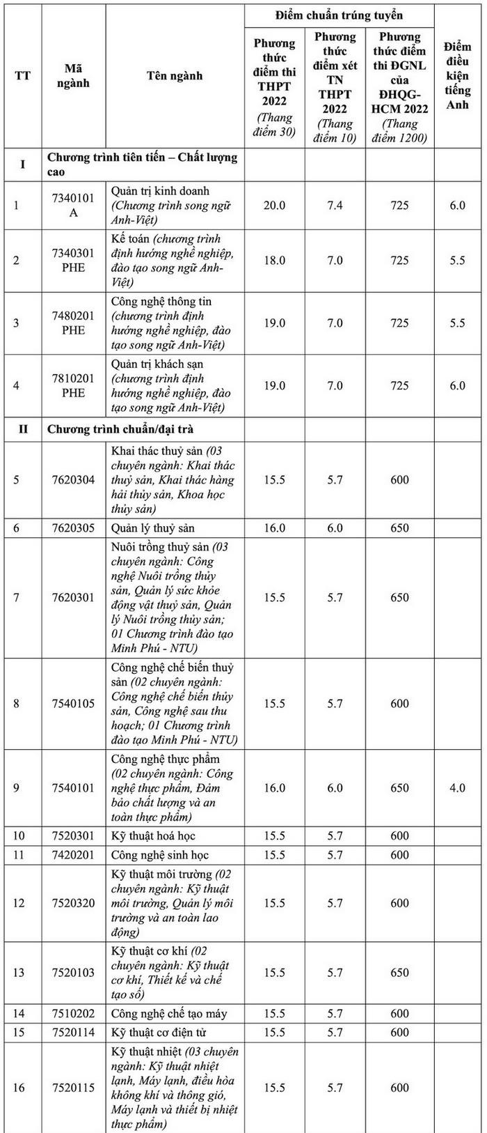 | Điểm chuẩn chi tiết của Đại học Nha Trang năm 2022. |