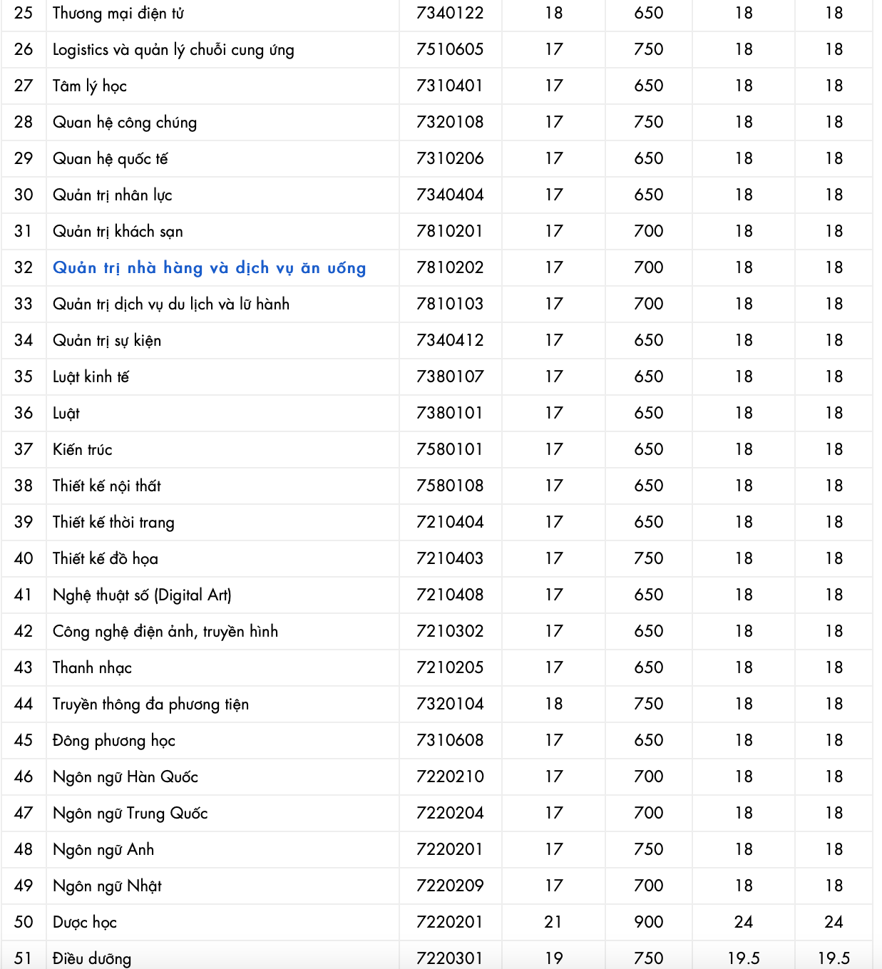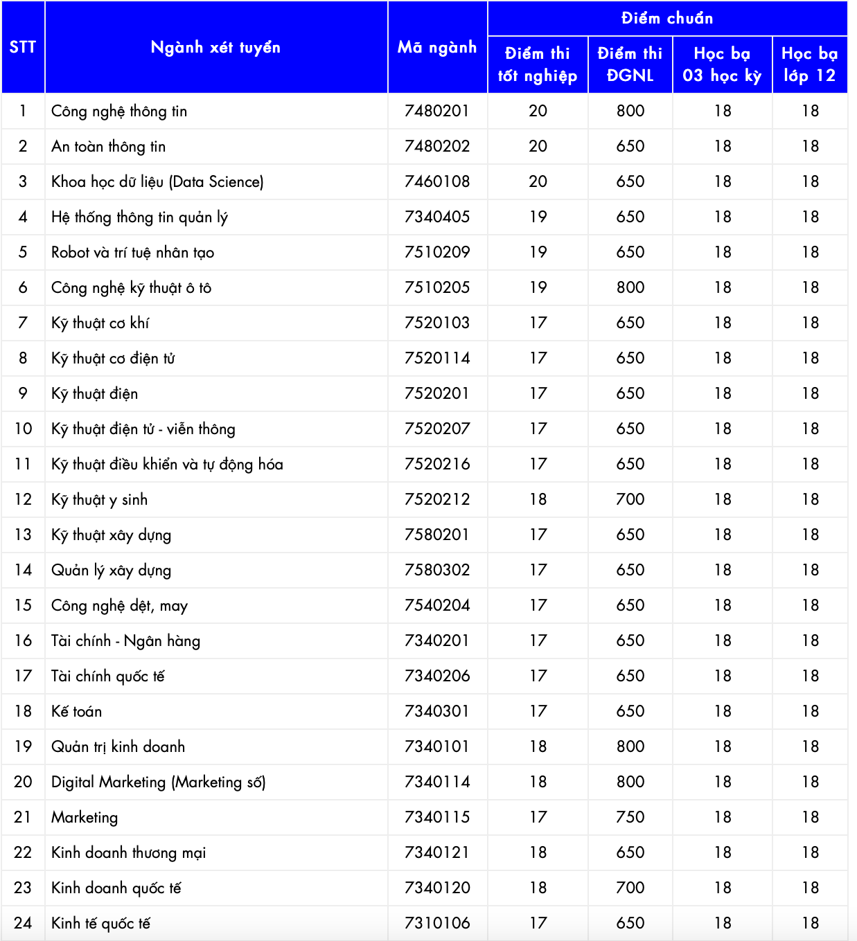 | Điểm chuẩn chi tiết của Đại học Kinh tế Tài chính TP.HCM. |