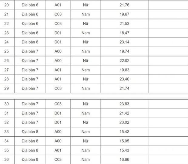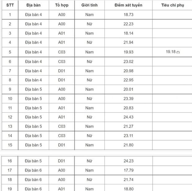 Theo trường công bố, mức điểm chuẩn dao động từ 15,42 đến 24,43 điểm tùy địa bàn và khối ngành và giới tính. Trong đó, địa bàn 5, khối A01, đối với thí sinh nữ lấy mức điểm cao nhất.