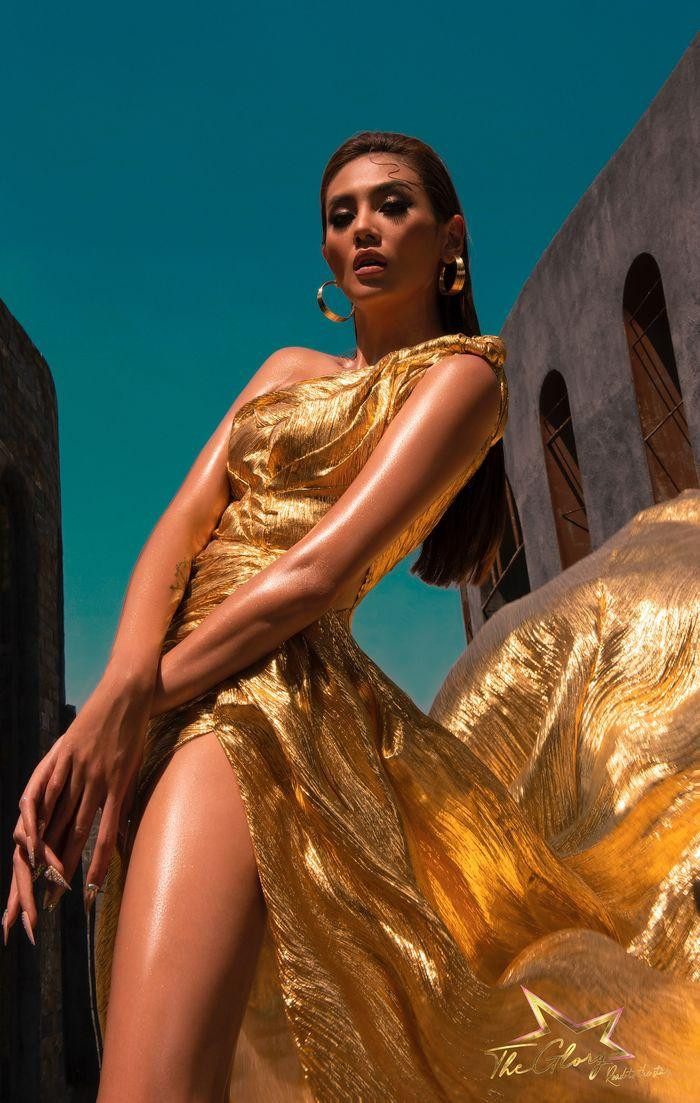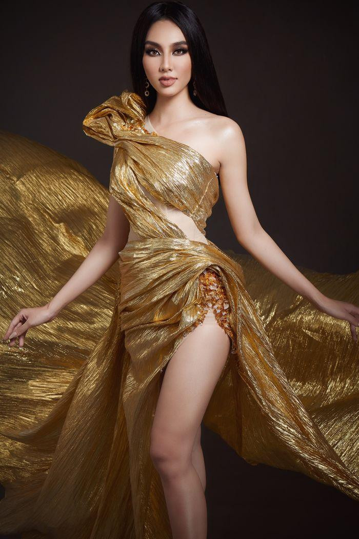 Trước khi tham gia Hoa hậu Hòa bình Quốc tế 2021, Thùy Tiên từng có bộ ảnh ấn tượng với chiếc váy vàng đầy quyền lực cùng đường xẻ cao vút khoe đôi chân dài. Nàng hậu còn trang điểm khá đậm nên nhìn khác lạ so với Thùy Tiên của hiện tại.