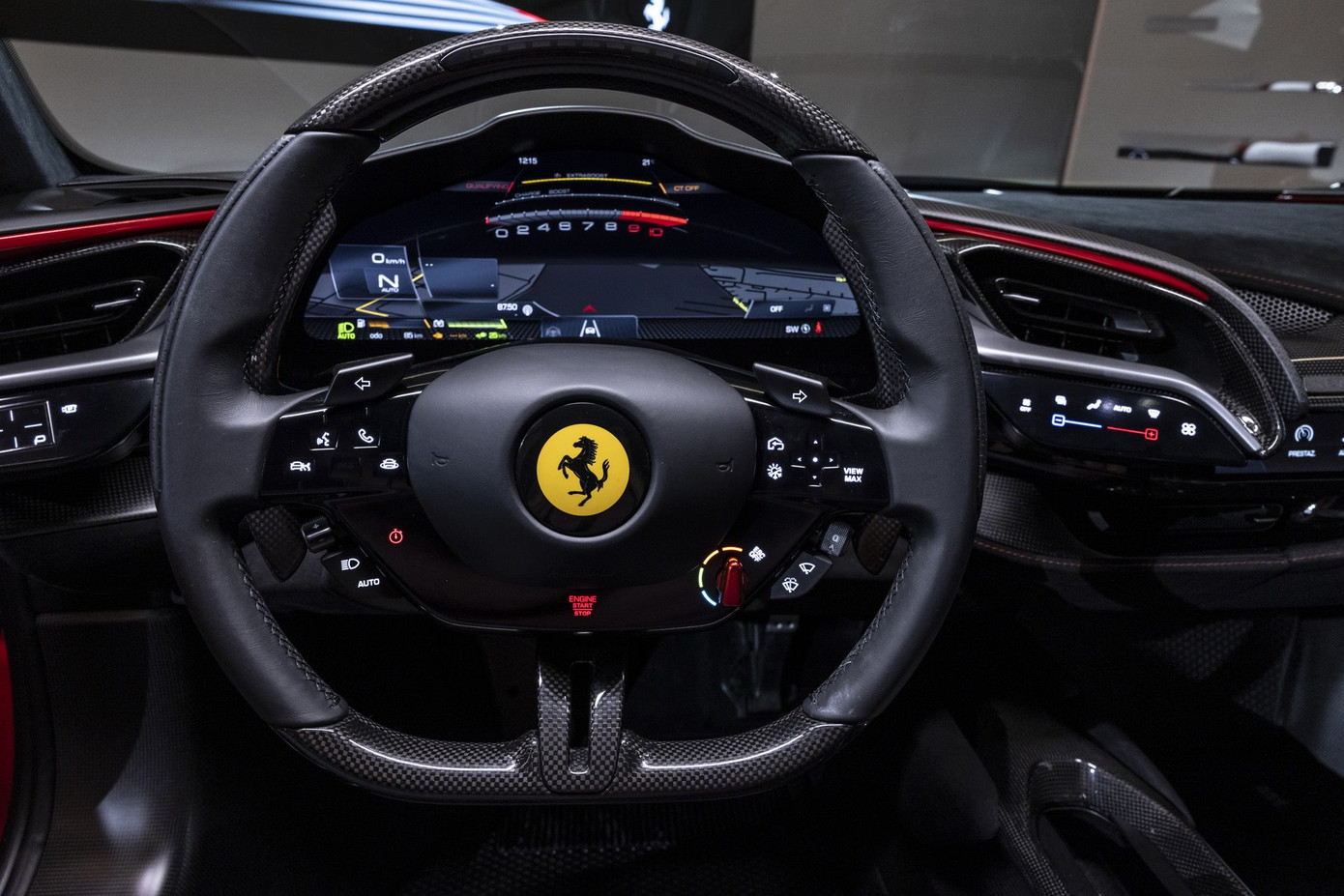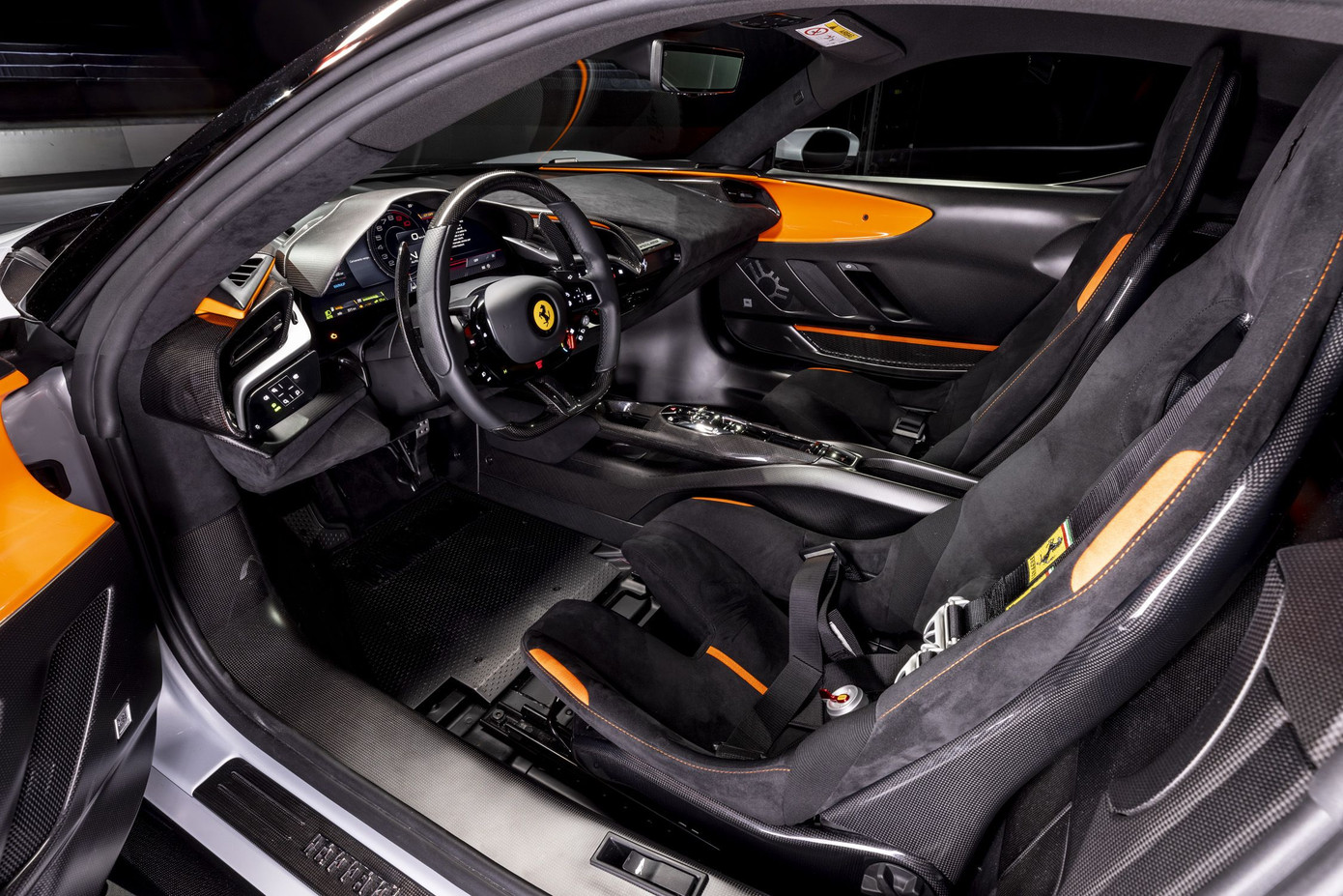 Tuy là phiên bản hiệu suất cao, SF90 XX vẫn có thiết kế nội thất khá tương đồng với mẫu SF90 tiêu chuẩn. Các trang bị bao gồm bảng vô lăng 3 chấu D-cut, đồng hồ kỹ thuật số có kích thước 16 inch, ghế lái thể thao được làm từ sợi carbon, giúp giảm cân nặng khoảng 1,6 kg so với bản tiêu chuẩn.